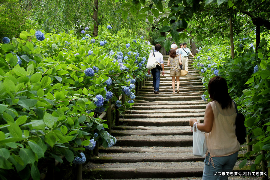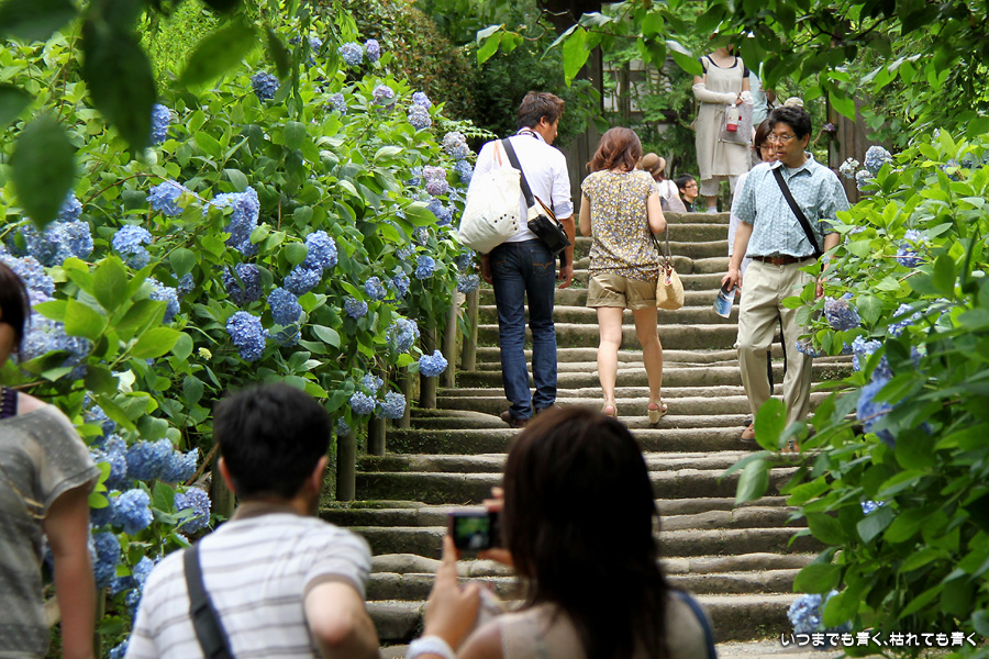 2009年7月に初めて訪れて明月院ブルーの紫陽花に魅せられた私。2年ぶりにその感動を味わおうと思って、明月院に行ってきました。しかし、今年の明月院の青い紫陽花は元気がなく、青色も明月院ブルーにしては薄い感じがしました。数日前からの猛暑にやられていたのと、色が濃くなるにはもう少し時間が必要だったのかも知れません。仕方がありませんね。そのせいか今年は他の紫陽花に目が行って、明月院にも青色の紫陽花だけではなくいろいろな種類の紫陽花があるのだなぁということがわかりました。でもやっぱり、明月院では、明月院ブルーの紫陽花を見たかったですね。残念でした。