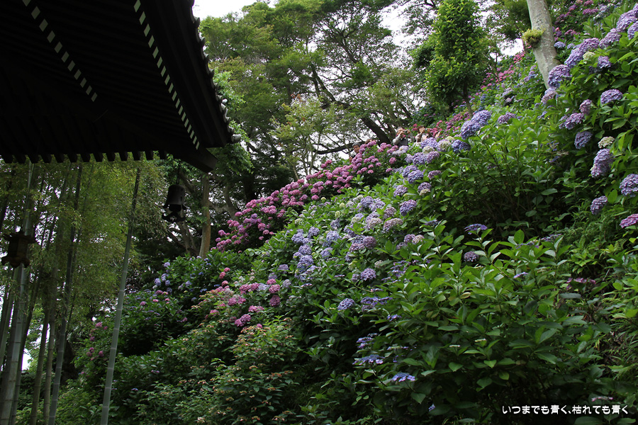 長谷寺の紫陽花の見所である眺望散策路は、時間が遅くなると人が多くなって入場制限がかかります。ゆっくりと時間をかけて散策したいので、二日目の朝一番で訪れました。残念ながら、長谷寺のの個々の紫陽花の花は、すでにアップに耐え切れないほどに傷み始めていました。見頃の時期に対して、ちょっと来るのか遅かったようです。しかし、少し離れて見れば、スケールの大きな紫陽花の群生の風景は、まだまだ見ごたえがあります。