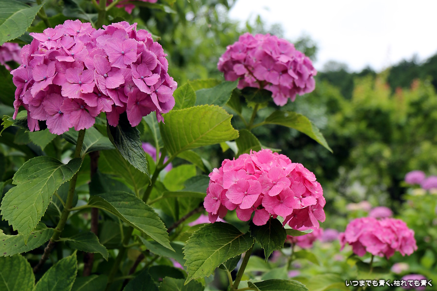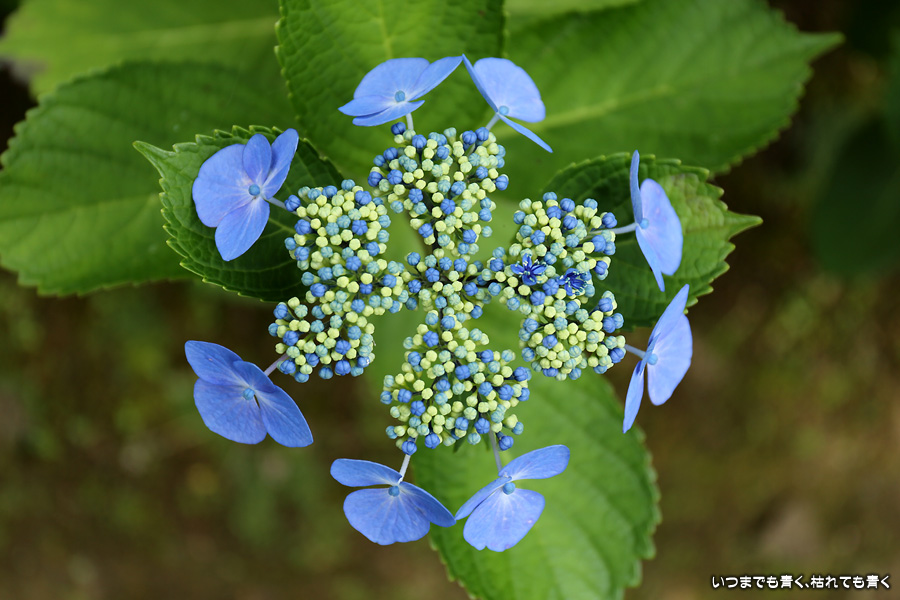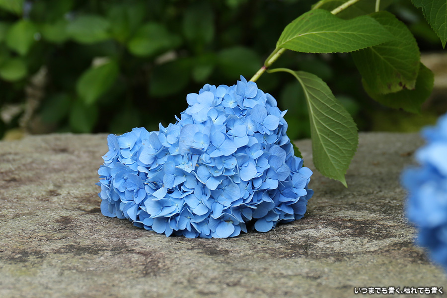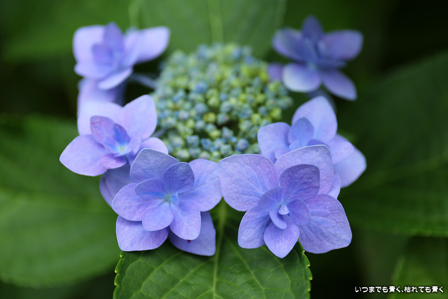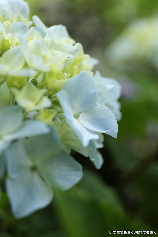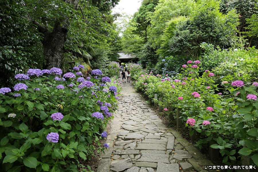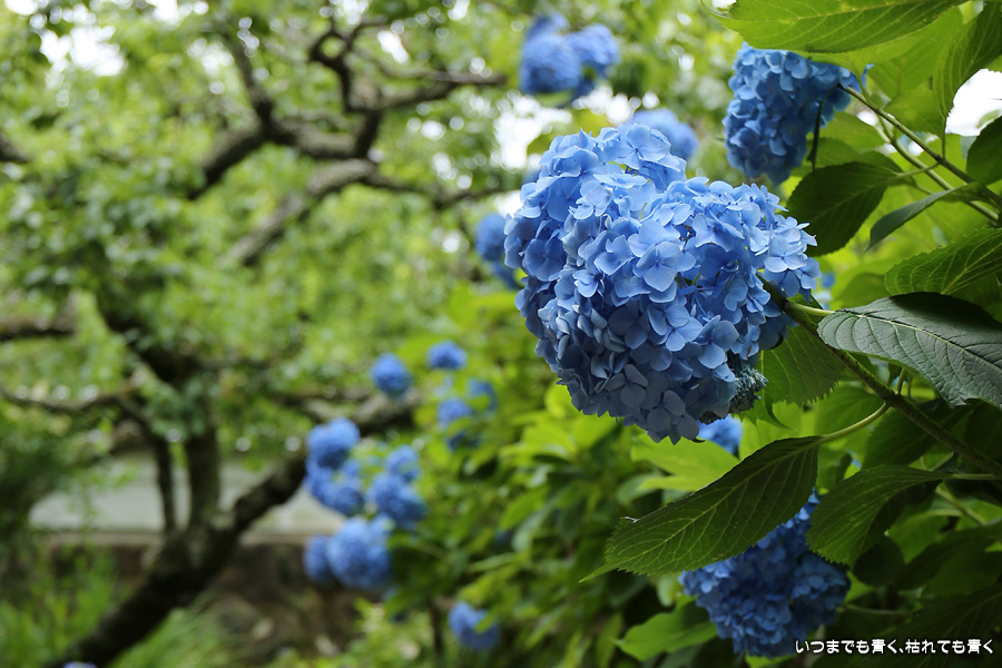 三河のあじさい寺、瑞雲山本光寺の紫陽花を家族で見に来ました。このお寺に紫陽花を見に来たのは今年で5回目(2010年、2011年、2012年、2014年、2016年)ですが、今日は、その5回の中で一番きれいではないかと思えるほど、花の状態が良かったです。すべての花が咲き始めたばかりの美しさで、目立つ傷みも全くありませんでした。そういう見ごろ最良日のせいか、私たちが帰る頃には駐車場に向かう道にクルマの行列ができるほどの人の多さでした。写真を撮る人も多くて、撮ろうとする構図の中からなかなか出てくれないのはお互い様で仕方がありませんが、あじさいの花の前でずっと三脚を置いたままにしていたり、カメラ談義を長々とするのだけはご勘弁といった感じでした。