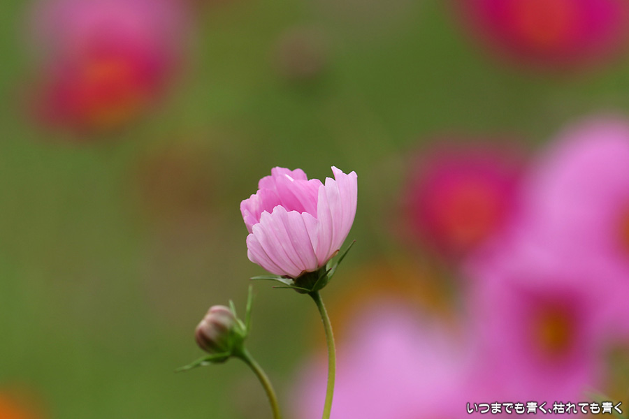 ふたたび訪れた千足町のコスモス畑です。二週間前に訪れた時は、咲いている花が少なくてこれからという感じでしたが、今日は満開で色鮮やかな美しいコスモス畑になっていました。ただ、今日も風が強くて写真撮影には適さなかったのが残念でした。なお、昨夜落としてしまった機材が心配だったので、今日重点的に使ってみましたが、まったく問題ありませんでした。良かったです。