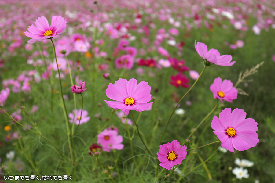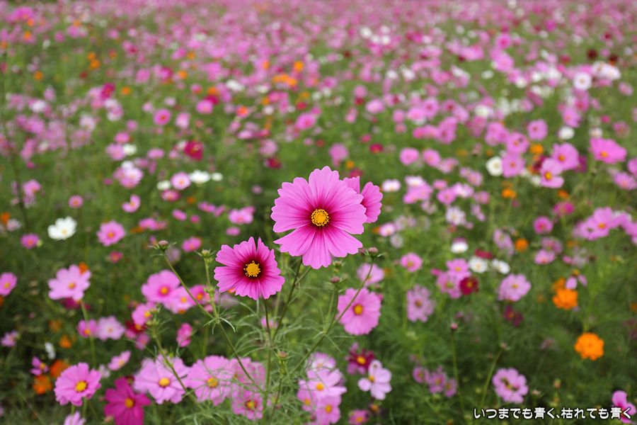 2016年10月23日に撮影した、愛知県豊田市・千足町コスモス畑のコスモスの写真です。