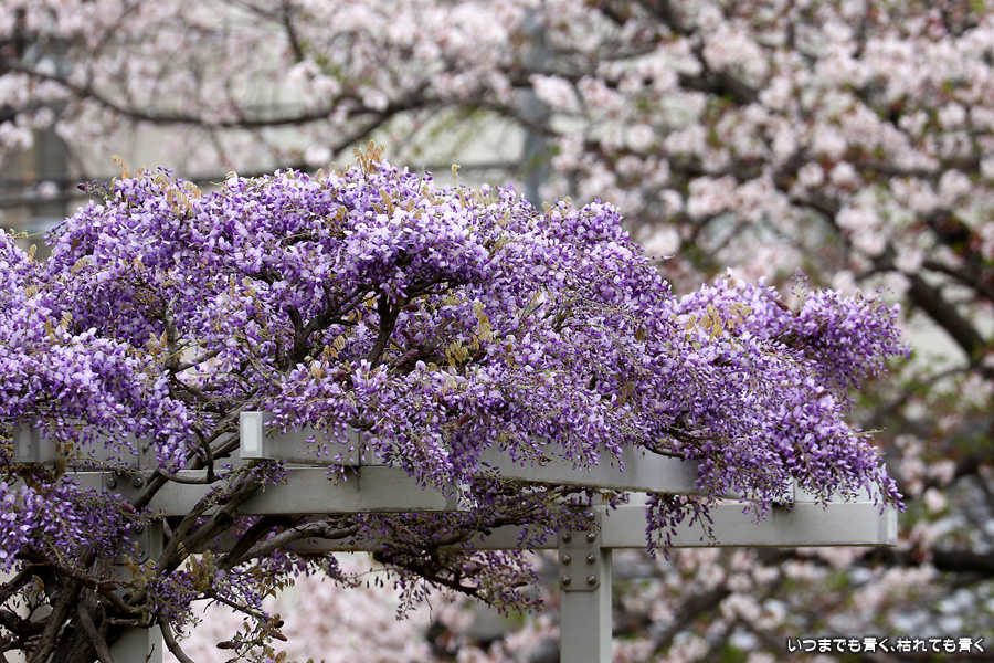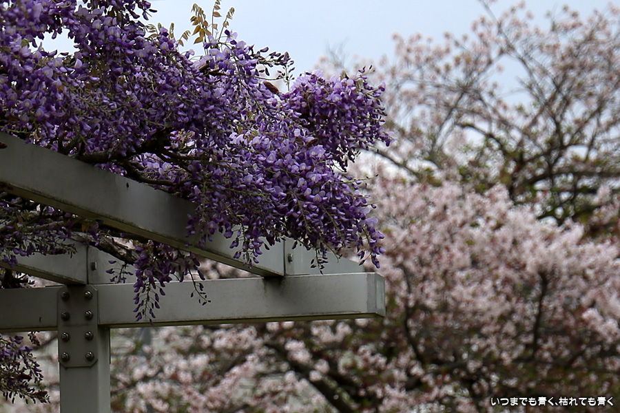 宗心洞公園は住宅街の普通の公園ですが、奥さんが藤が咲いていると教えてくれたので、カメラを持って行ってきました。住宅街なので絵になる景色ではありませんが、桜と藤というのは珍しい光景でした。