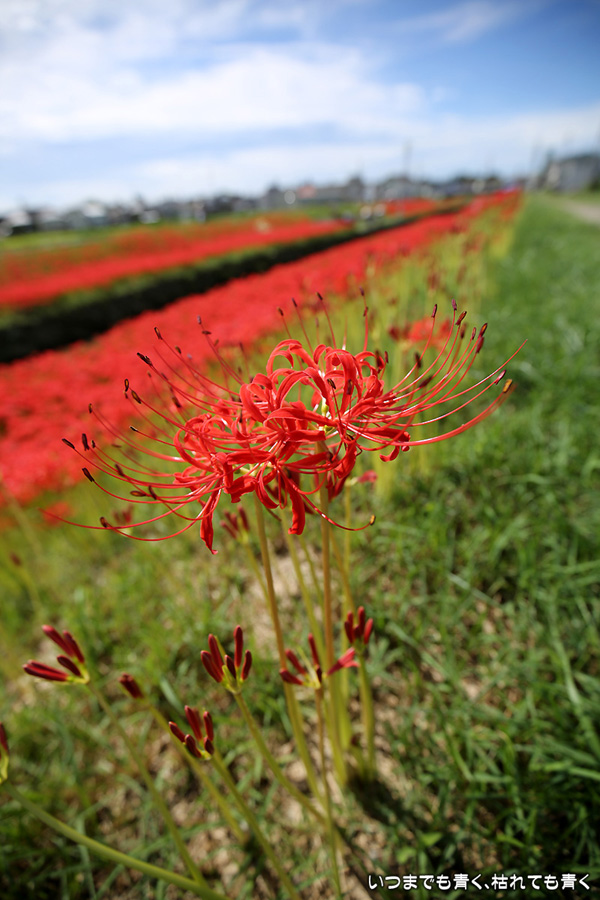 久しぶりの晴れ間だったので、見ごろとなっていた逢妻女川の彼岸花を撮影してきました。まだ術後療養中ですが、一年一年の季節の情景を大切にしていきたいと思ったのと、リハビリを兼ねて見に行ってきました。咲いたばかりの花たちが、とても美しかったです。