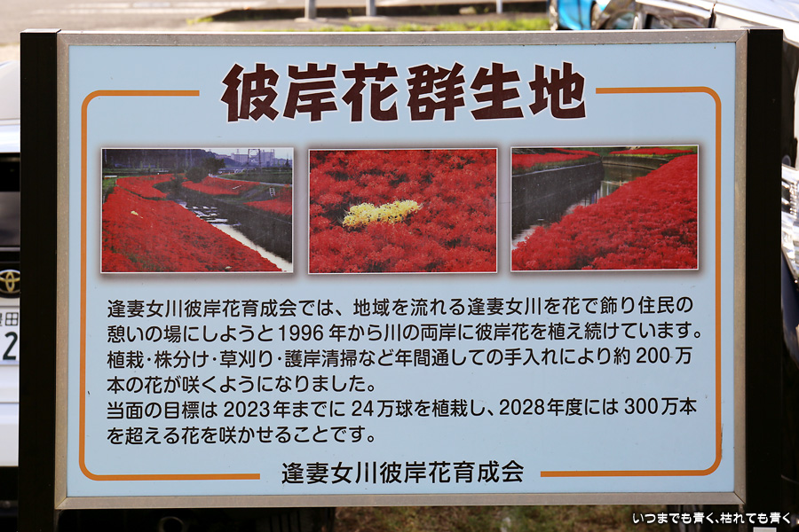 2023年9月25日(月)に撮影した、愛知県豊田市・逢妻女川の彼岸花の写真です。