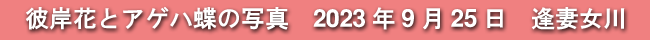 2023年9月25日(月)に撮影した、愛知県豊田市・逢妻女川の彼岸花とアゲハ蝶の写真です。