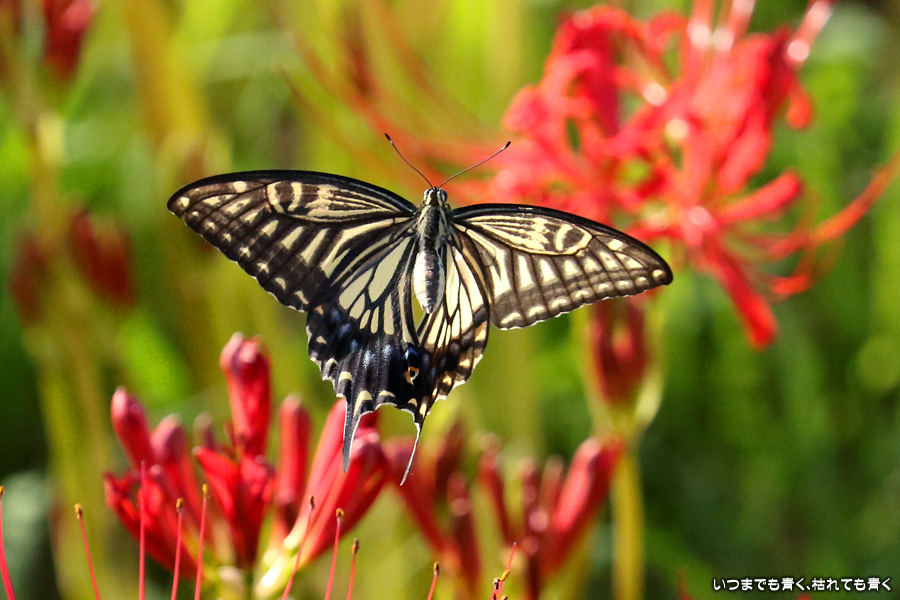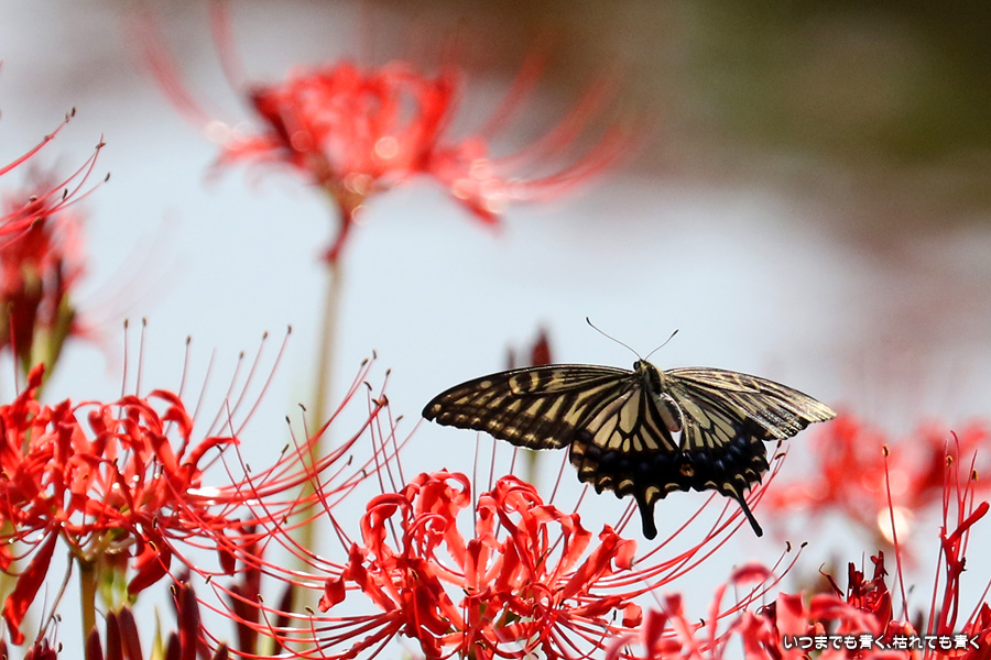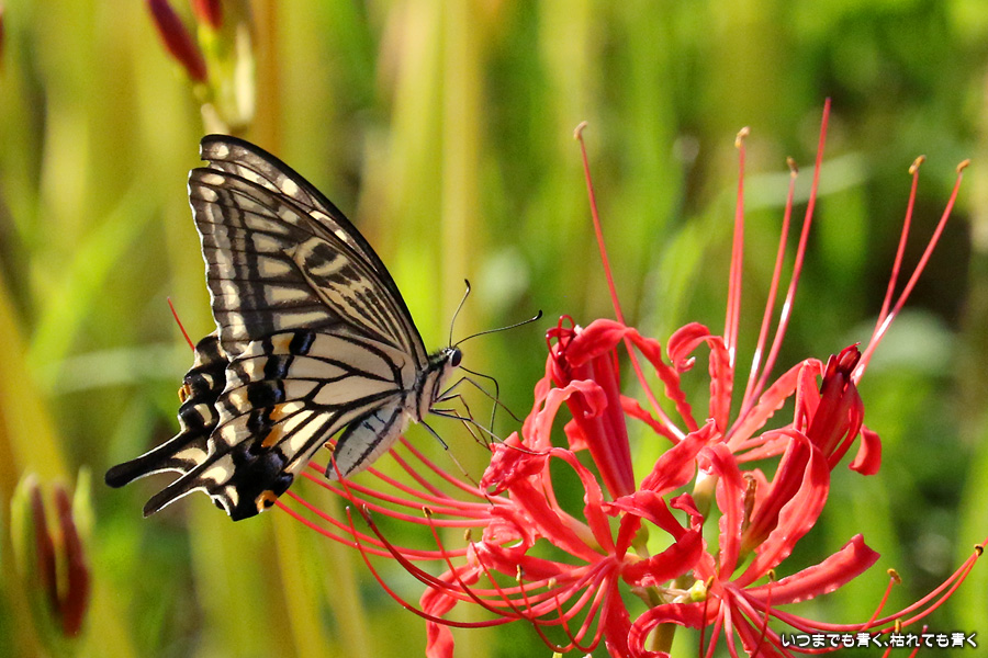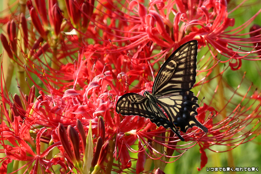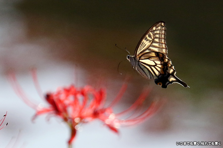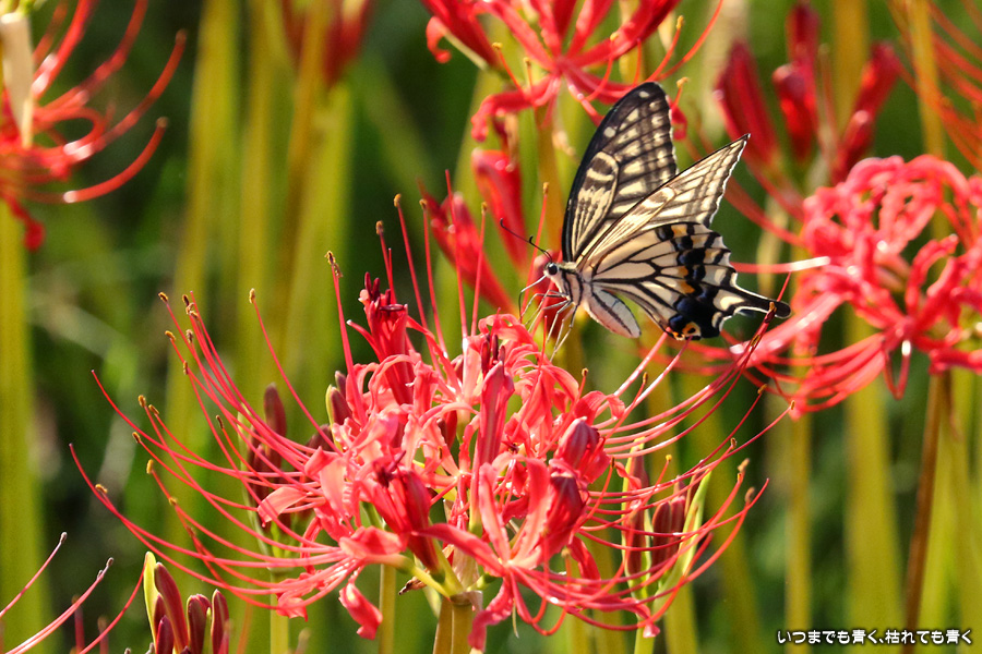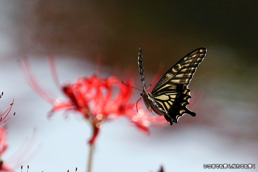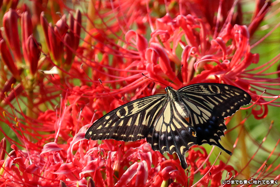 彼岸花は寂しい状況でしたが、アゲハ蝶は花に寄ってきていて、いつものように彼岸花とアゲハ蝶の写真を撮りました。これも彼岸花の撮影の楽しみのひとつです。
