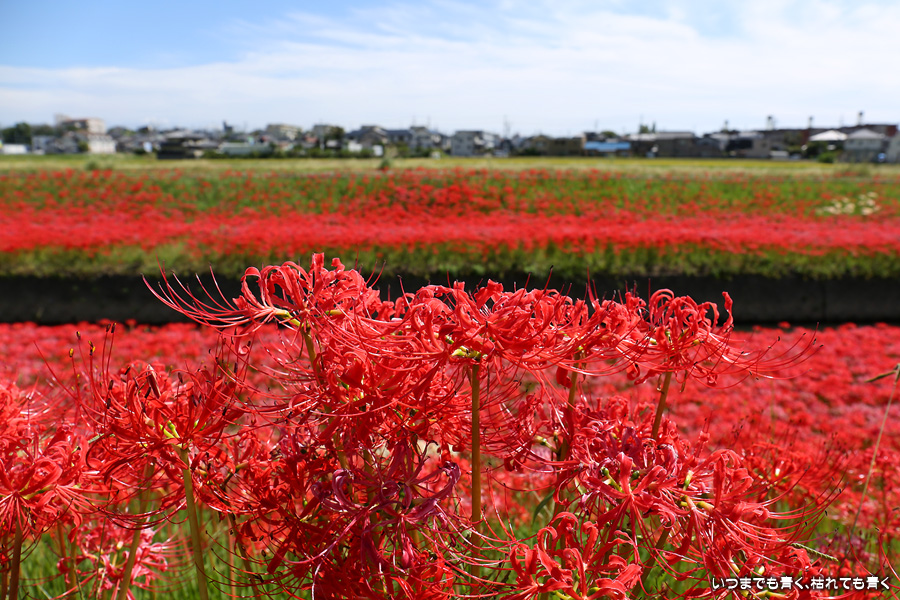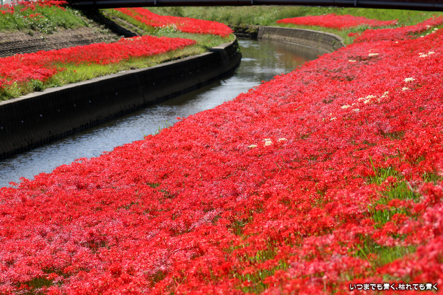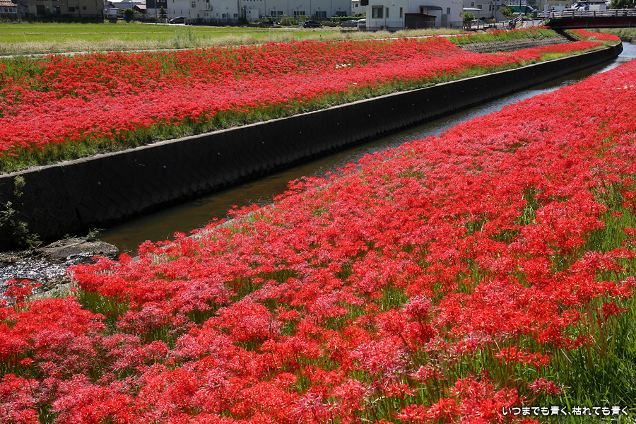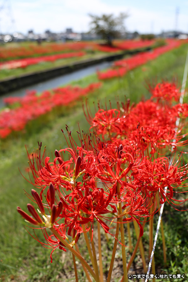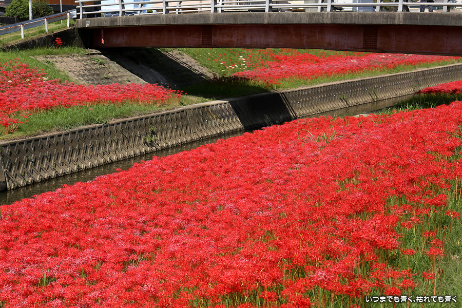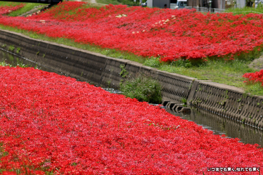 2023年10月2日(月)に撮影した、愛知県豊田市・逢妻女川の彼岸花の写真です。