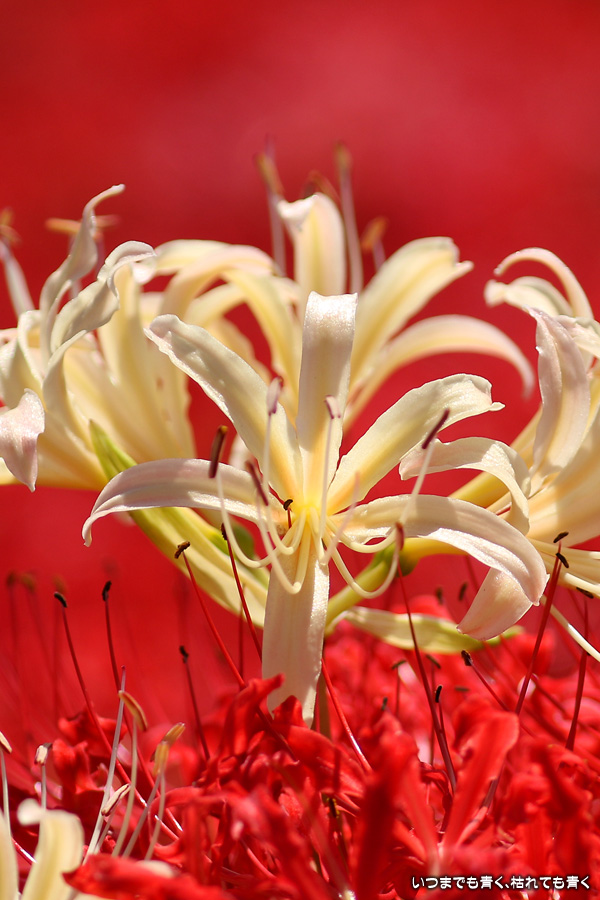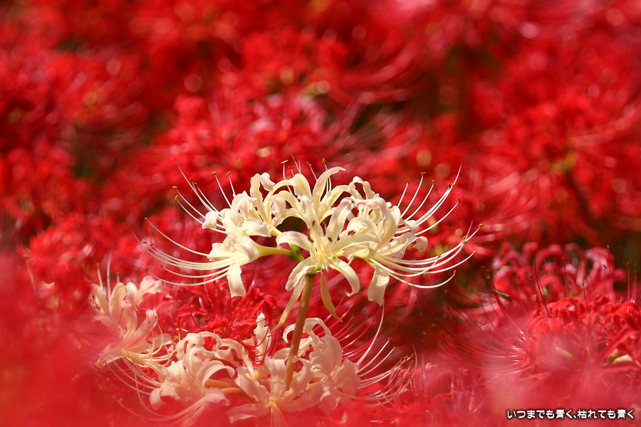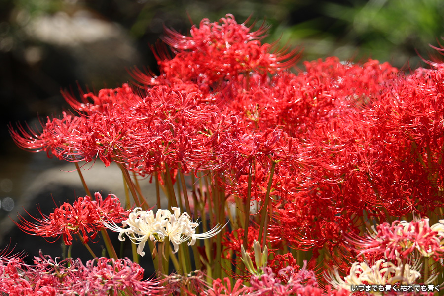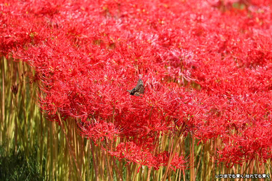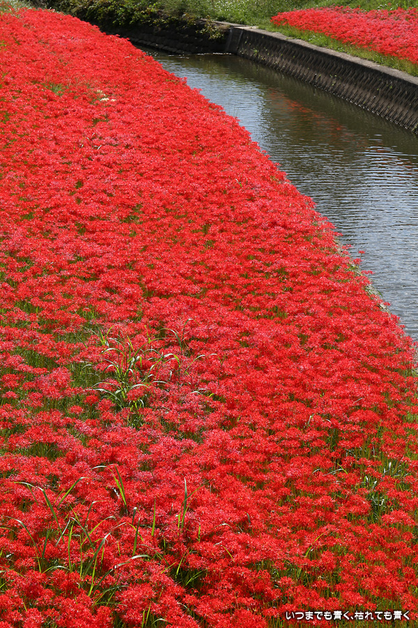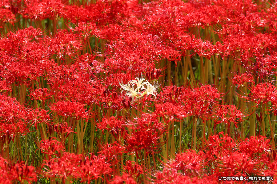 今年の彼岸花は暑さのせいで咲きがよくないのかなと思ってあきらめていましたが、天気が良くて気持ちの良い風が吹いていましたので、もういちど近くの逢妻女川の彼岸花を見に行ってきました。一週間前の9月25日に訪れた時は、斜面にはまったく彼岸花が無かったのですが、一週間後の今日は、斜面も含めてきれいな赤い絨毯になっていました。早く咲いた花は日に焼けたように白っぽくなっていましたが、それを補うように新しい真っ赤な彼岸花がたくさん咲いていました。来るのを迷いましたが来てみて良かったと思います。風も涼しく、ようやく秋の気配が漂ってきました。