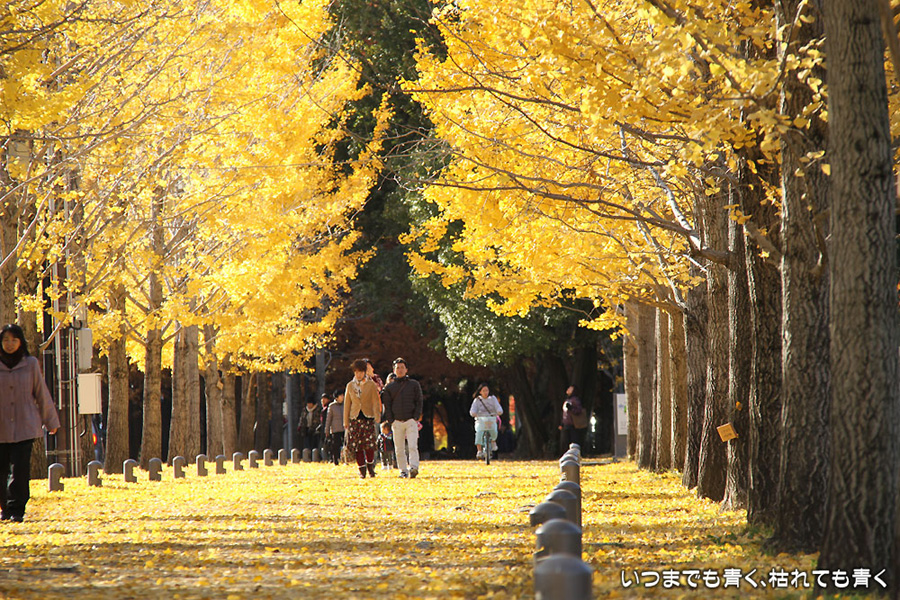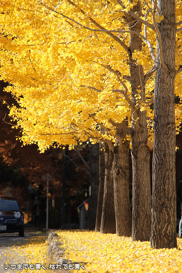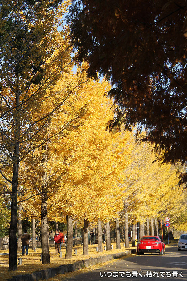 昨年知った岐阜県各務原市の「学びの森」にある、冬ソナストリートに行ってきました。今年は絶対に行こうと思って時期を見計らっていたのですが、すでに葉を落としている木もあって、もう少し早く来ていても良かったかなという感じでした。しかし、黄色い天井と絨毯となった冬ソナストリートは、とても魅力的でした。