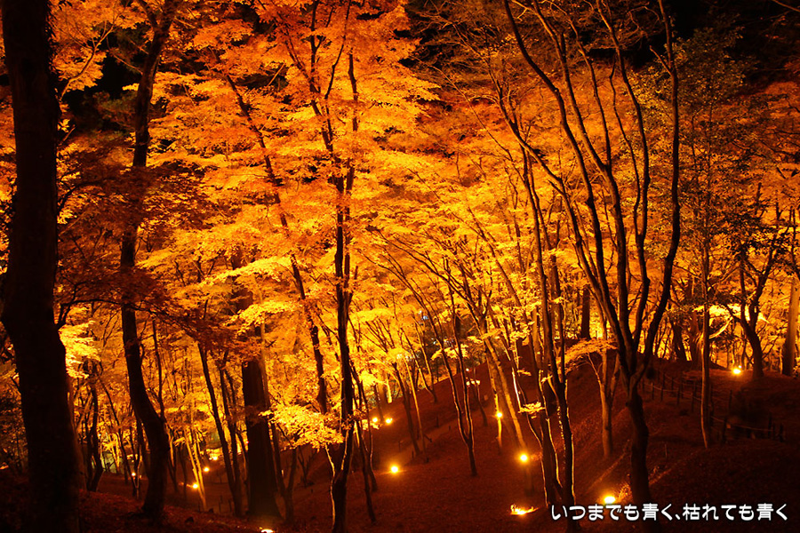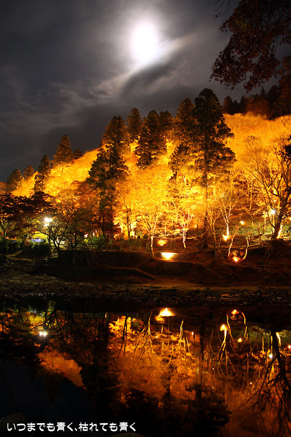 11月28日に仕事帰りにひとりで香嵐渓に行った時の写真を家族が見て「ぜひ行きたい!」というので、今日、仕事を早く切り上げて再び香嵐渓の紅葉ライトアップに行ってきました。今回は、標高254mの飯盛山にも登ってきました。けっこうきつかったですが、山頂で撮った、ライトアップを背景にした家族写真はとてもきれいに撮れました。ただ、ストロボ+スローシャッターでの撮影だったため、ストロボ発光のあと少し動いてしまったところは、背後のライトアップと人物が重なり面白い雰囲気の写真となりました。残念ながらその家族写真は掲載しておりませんが、途中で撮影した奥さんと娘たちの写真は一枚掲載しました。