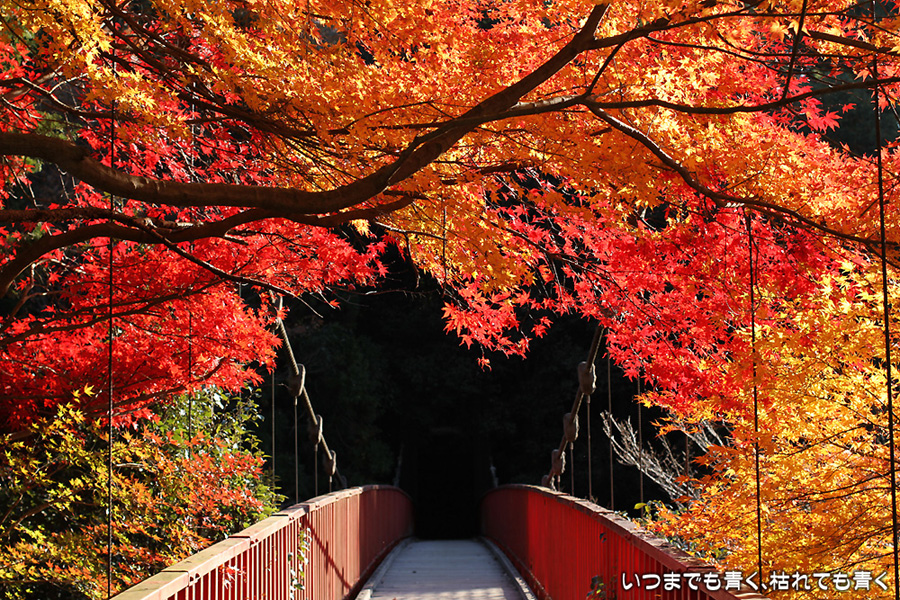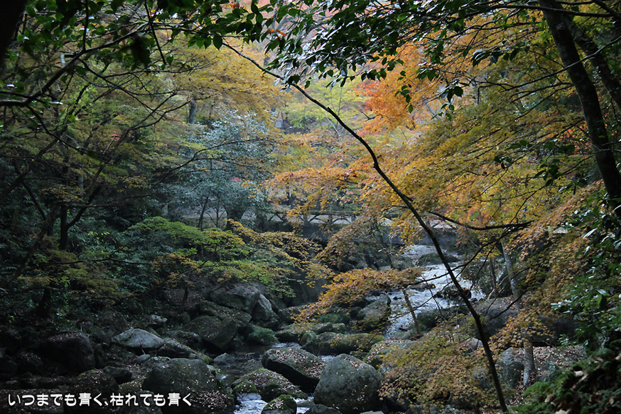 今年は京都の紅葉を楽しみに行けない悔しさを、近場の紅葉散策にぶつけています。昨日の香嵐渓に続き、今日は王滝渓谷を龍門橋から王滝湖かけ橋まで往復しました。今回は山道を長く歩くということで、家族は同行拒否だったのでひとりで散策でした。龍門橋、王滝湖かけ橋間を約3時間近くかけてのんびりと歩きましたが、不動山には登っていませんし、梟ヶ城址にも行っていませんし、宮川散策道も楽しめませんでした。もっと早く動き出さないとダメなくらいに広い場所です。カメラは、買ったばかりの「CANON EF40mm F2.8 STM」パンケーキレンズをEOS 7Dに装着して、王滝湖かけ橋までの往路(掲載写真の最初の15枚)をすべてこのレンズで撮影しました。単焦点レンズなので構図が難しいですが、体を動かして構図を決めて撮った写真はなかなかシャープで美しい絵です。2万円しない安価なレンズですが、使い勝手も絵もなかなか良くて楽しく使えそうです。