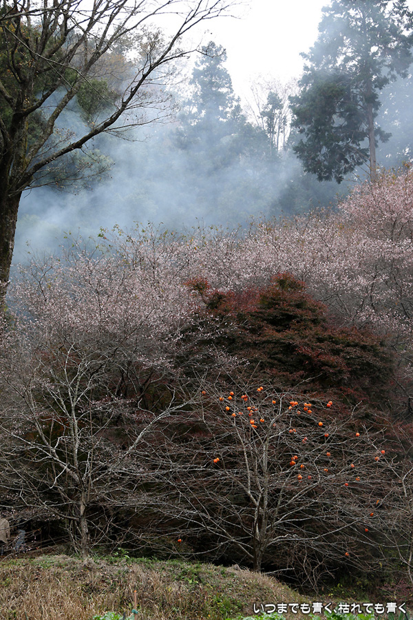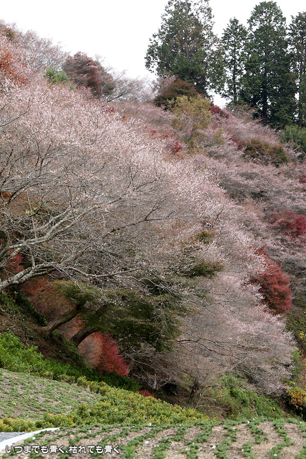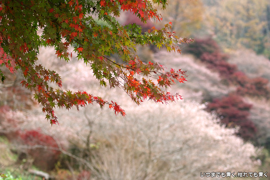 我が家から30km以上離れた市内、小原の四季桜を見てきました。昨年は渋滞に巻き込まれて少し手前の小原ふれあい公園までしかたどりつくことができませんでしたので、今年は朝早くから出発し川見四季桜の里を楽しんできました。今年は四季桜の開花は早くて、すでにもう散り始め。遠くから見るとピンクに見えますが、近くに行くと花がちらほら残っている程度という感じです。逆に紅葉は染まりきれずに赤と緑が混じったまま散り始めています。ピンクと赤の競演はまた来年に期待しましょう。