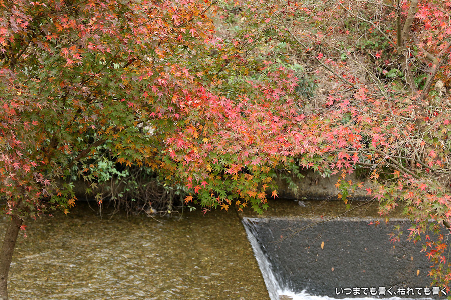 2015年11月23日に撮影した、愛知県豊田市・川見四季桜の里の四季桜と紅葉の写真です。