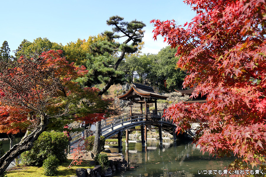 郡上八幡城から曽木公園に向かう帰路、友人が行ってよかったと教えてもらった虎渓山永保寺に立ち寄りました。永保寺庭園の紅葉は真っ赤に染まり、まさに今が見ごろでした。庭園の池やそこにかかる無際橋が紅葉とマッチして絵になります。これだけの庭園にもかかわらず拝観料や入園料は無料で、いつでも気楽に訪れることができます。奥にある虎渓公園では、春には桜が楽しめるようです。