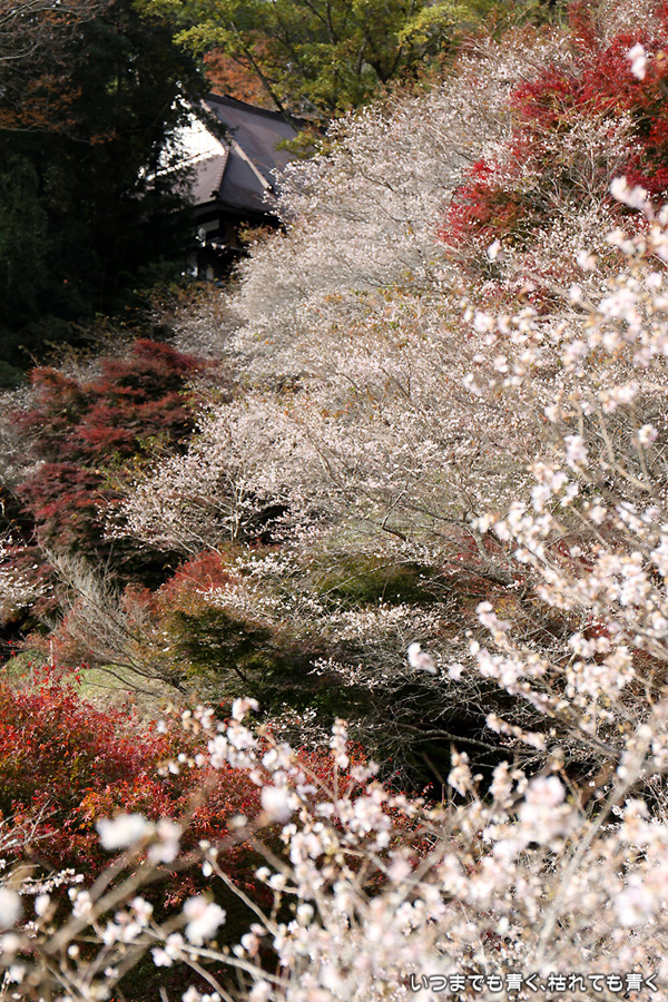 小原四季桜まつり開催中の川見四季桜の里です。昨年は四季桜と紅葉の時期があわずに残念でしたが、今年はきれいに山が赤と白に染まっていました。四季桜の花は、枝についている花の数が少ないなぁというのが気にはなりましたが、四季桜の花はこんな感じなんでしょうか。朝一番だったのと、雲が多い天候だったので、太陽の光によって四季桜の色が変わって見えたのも面白かったです。