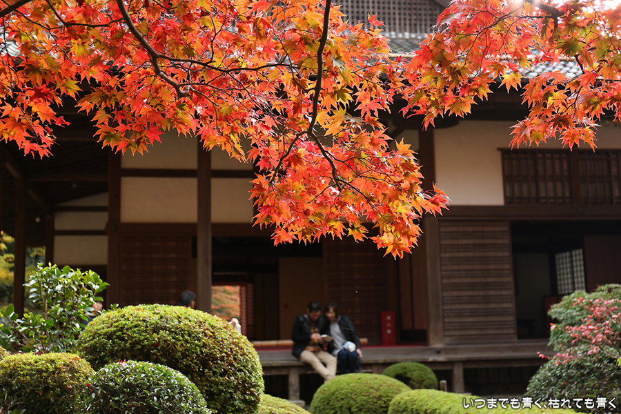 この前に来た時は参道を登るのがきつくて、本堂に着いた時には疲労困憊だった湖東三山金剛輪寺です。今日はその参道を軽快に登ることができました。先が見えていると気分が違うのかもしれません。紅葉は庭園が美しく色づいていましたが、三重塔のまわりの紅葉はこれからという感じでした。こういう場所は心落ち着きますね。