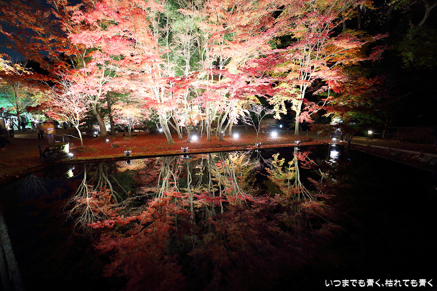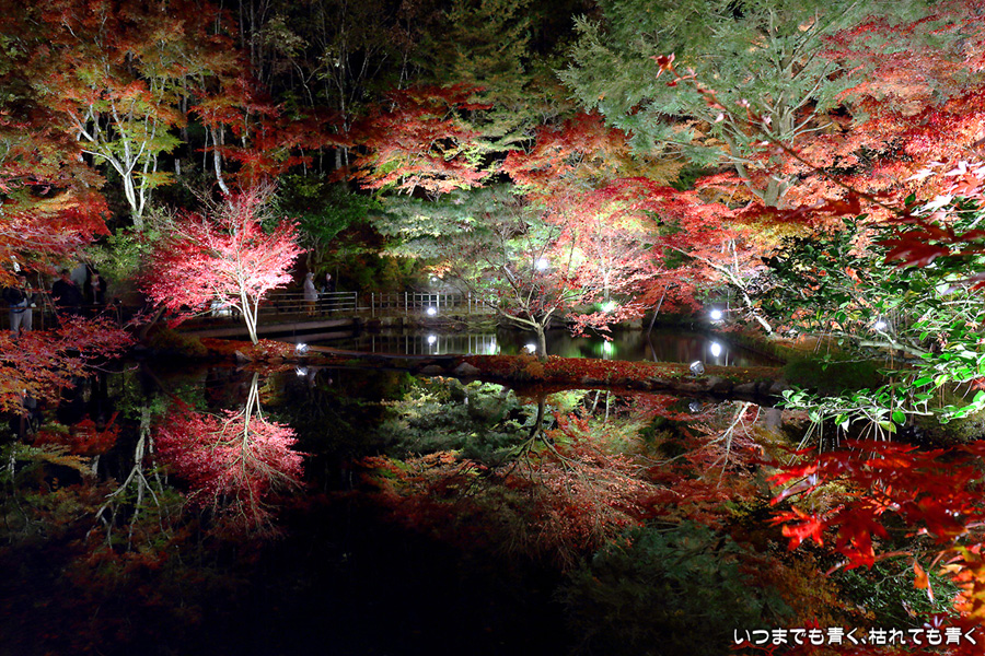 風がまったくない穏やかな日だったので、三重からの帰りに岐阜の曽木公園の逆さもみじを見に行くことにしました(帰り道といっても自宅を通りすぎた反対方向にあります)。気温5度、吐く息が白くなりそうな状況ですが、水面は微動だにせず美しく紅葉を映し込んで吸い込まれそうです。8時半頃になると風が出てきて水面が揺れ始めたので、撮影は区切りとしてあたたかいぜんざいをいただいて退散しました。