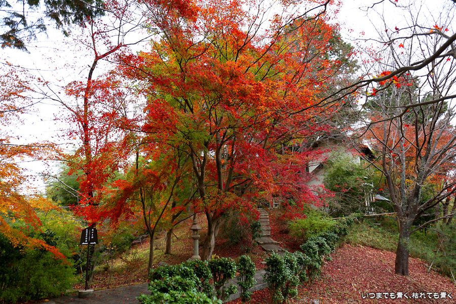 「京都3日間紅葉巡りぶらりひとり旅」の最後のお寺になります。このお寺はしだれ桜(樹齢200年なりひら桜)で「そうだ 京都、行こう」のポスターになったお寺です。昨年、善峯寺に行く途中通り過ぎたのですが、気になっていたので今年訪れてみました。訪問する人も少ないこじんまりとしたお寺ですが、私はこういうお寺が好きです。奥には在原業平のお墓があり、「なりひら寺」と呼ばれています。