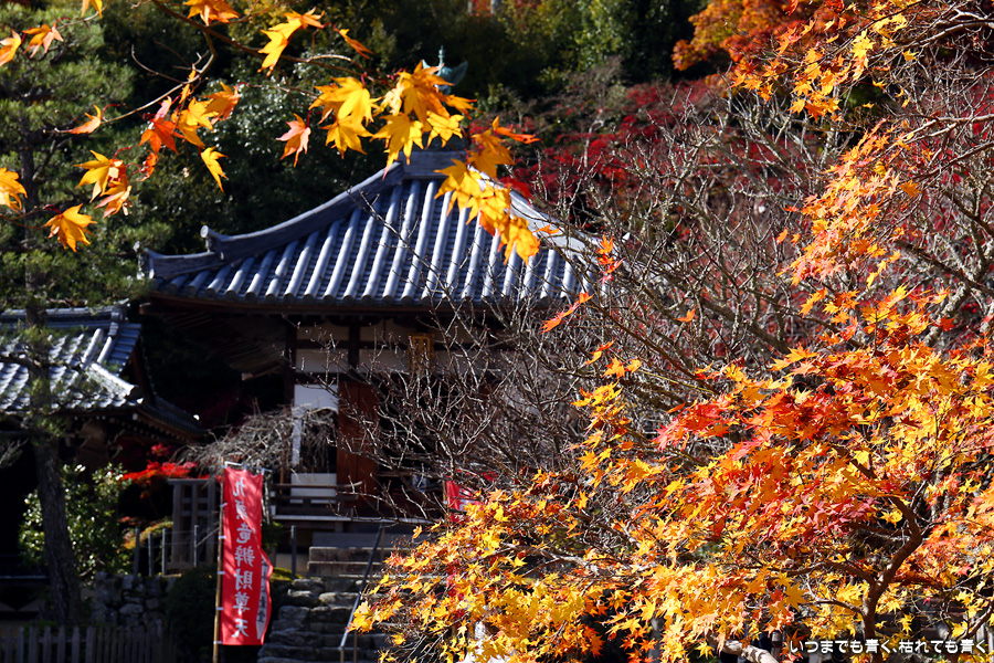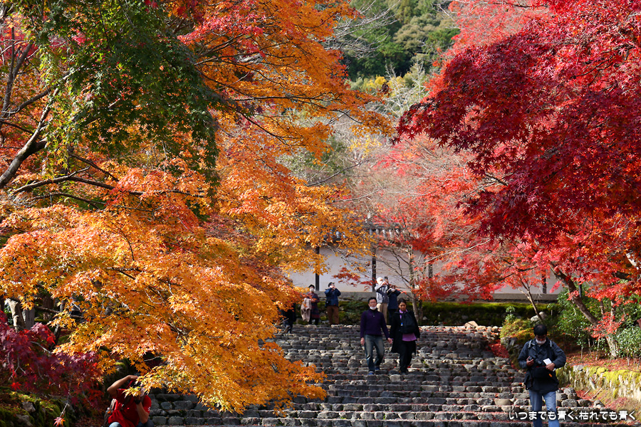 昨年は人のいない写真を撮りたかったので朝一番に訪れましたが、今年は宝筐院に先に行きましたので人が多いのは覚悟で訪れました。人が多くても二尊院は好きな寺院なので嵐山に来たら外すわけにはいきませんが、思っていたよりは人は多くなく、さすがに「紅葉の馬場」は人のいない写真は難しかったですが、その他の場所では少し待てば人のいない写真を撮ることができました。今年の二尊院の紅葉は色づきもよく、葉もまだ美しい葉が多くて一番いい時期に訪れることができたと思います。写真は、自己満足ですが思った通りに撮れている写真が多く、やっぱり全体的に被写体が美しいといい写真も多くなりますね。そういう時は写真の選別・色調補正作業も楽しくなります。