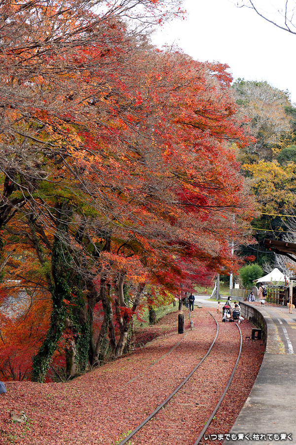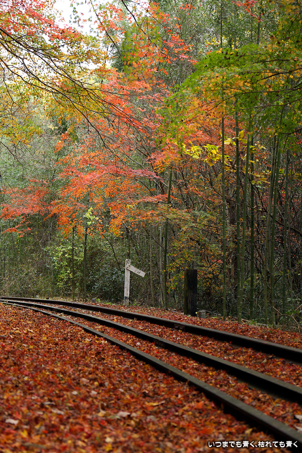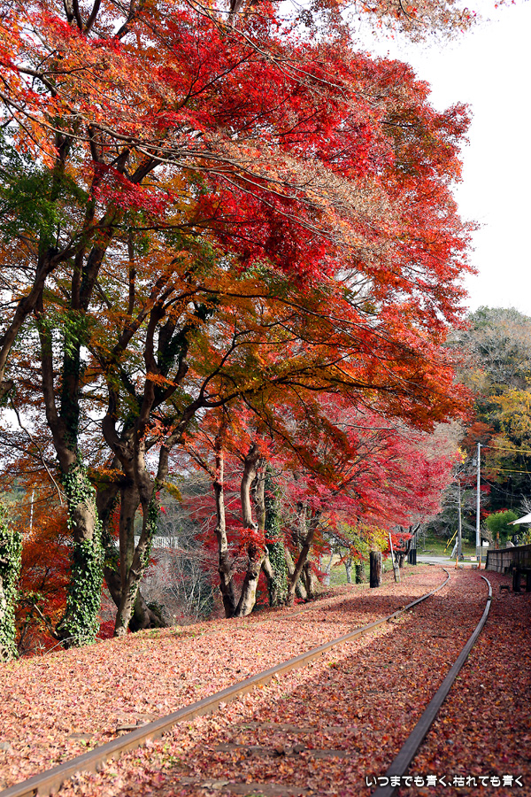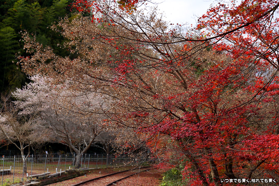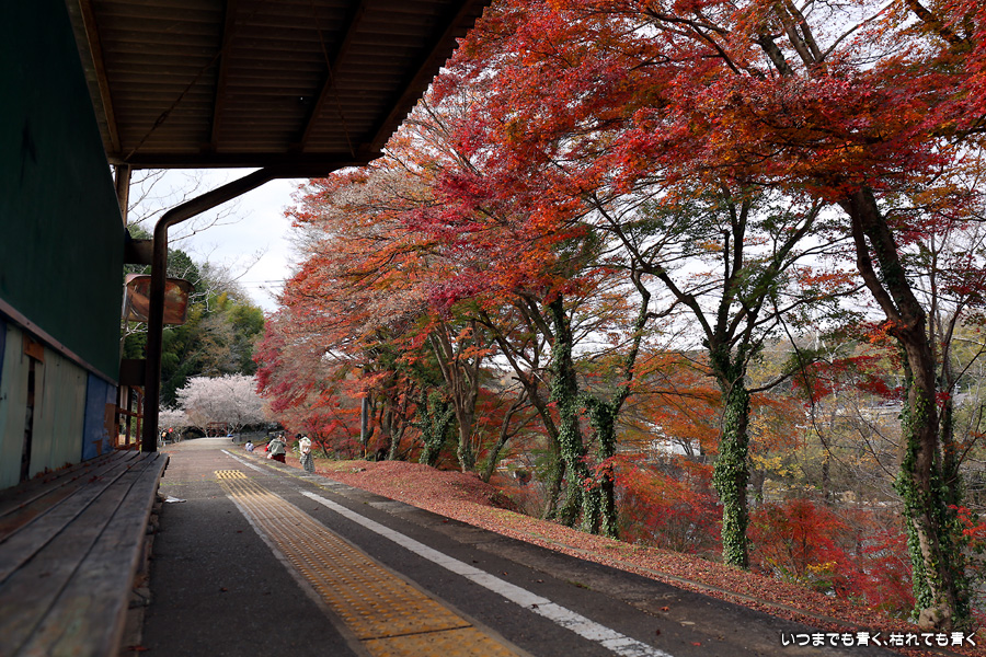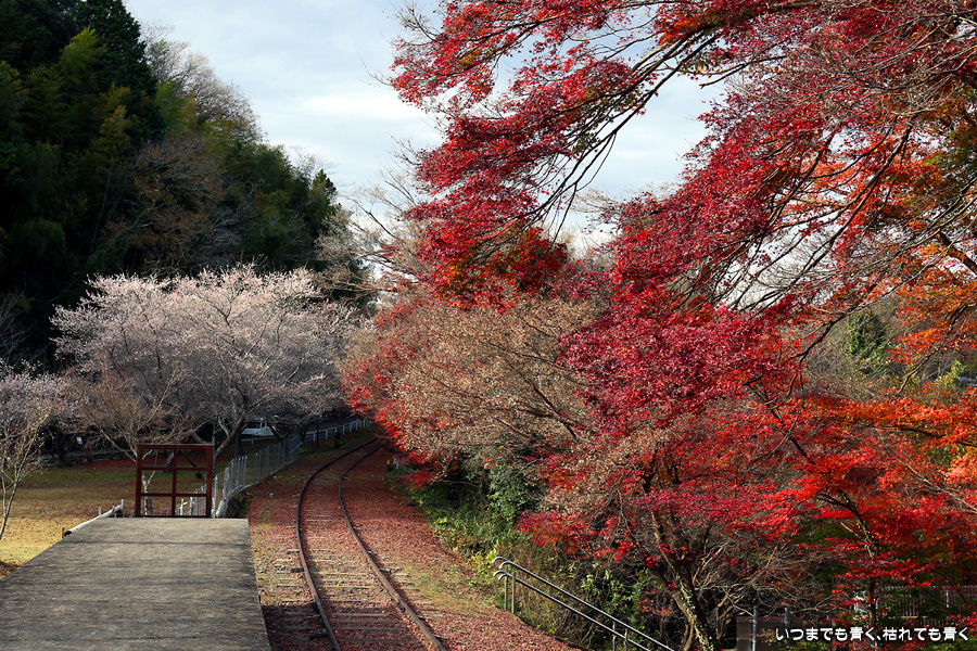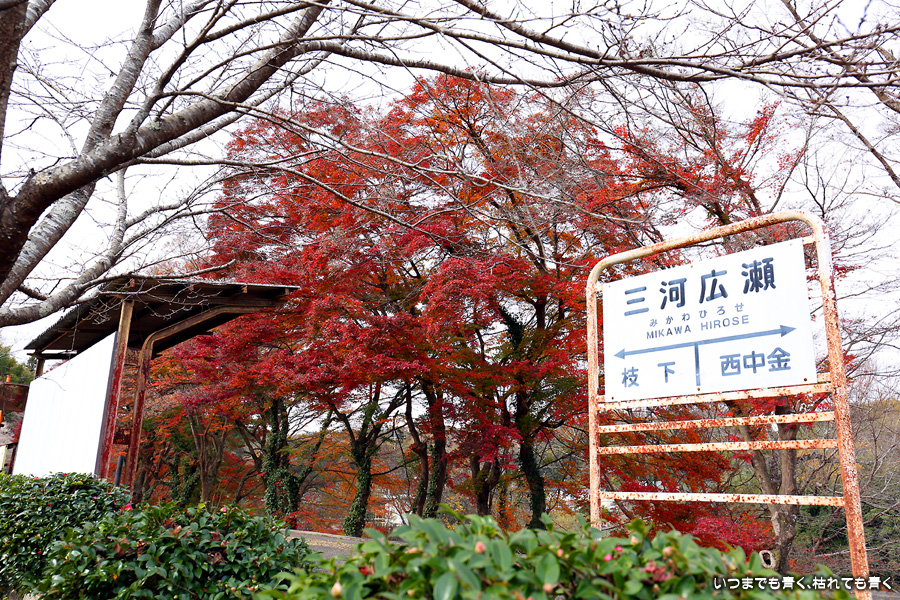 2022年12月1日(木)に撮影した、愛知県豊田市・旧名鉄三河線(山線)三河広瀬駅(廃駅)の紅葉の写真です。