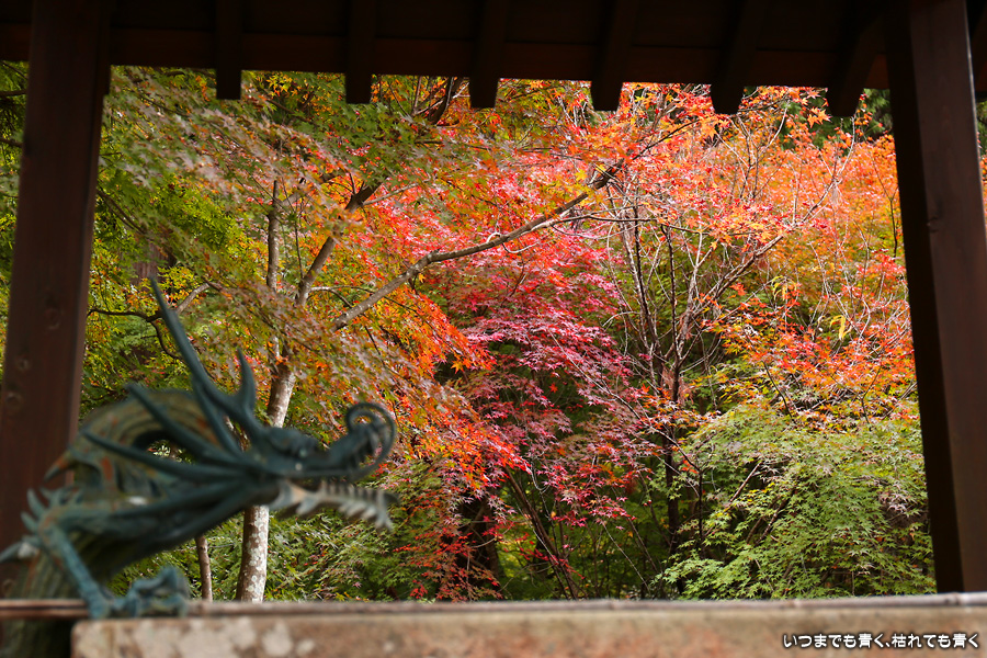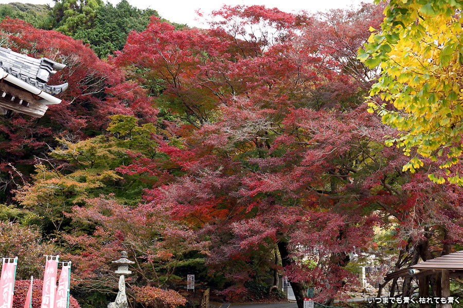 大和の大いちょうを見に行った帰りに立ち寄りました。普門寺はもみじ寺と切り絵の御朱印で有名です。SNSも活用されていて紅葉状況も頻度高く紹介されています。「愛知県で一番遅くまで紅葉を楽しめる」という通り、紅葉した葉とまだ青い葉が混じり合うという感じで、12月にはいっていますがまだしばらくは楽しめそうな状況でした。仁王門裏の古木もみじが一番最後に色づくことから晩秋を惜しむ「名残もみじ」と呼ばれていますが、今年もその木が真っ赤に色づいた姿は見ることができませんでした。
