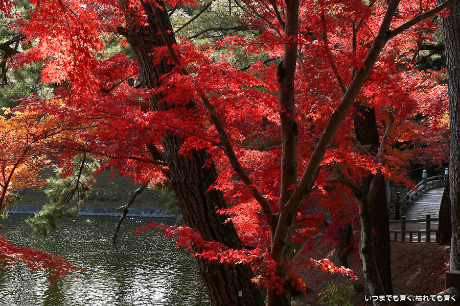 今年の紅葉は、いつも出掛ける京都は人が多いので近場の名所だけにしています。この岡崎市東公園の紅葉を見に来たのは久しぶりでしたが、ちょうど見ごろできれいでした。残念だったのは、浮御堂のあるあしのべ池の水が無かったことでした。久しぶりにウォーキングも兼ねていい時間を持てました。