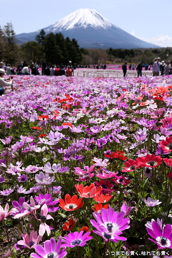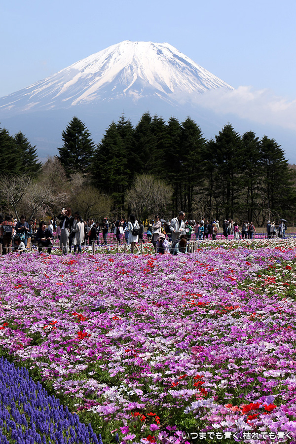 2017年5月2日に撮影した、山梨県富士河口湖町・富士芝桜まつり会場から見た富士山の写真です。