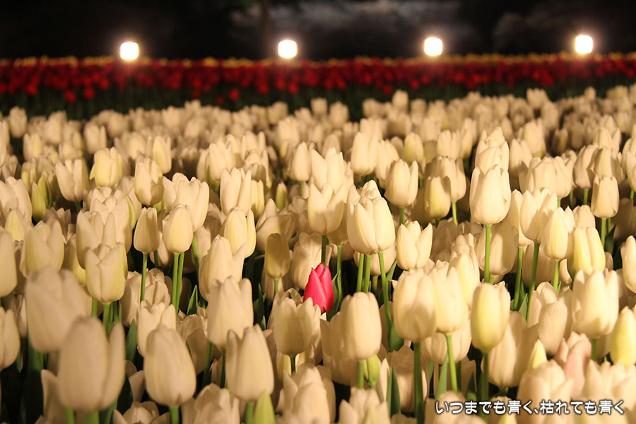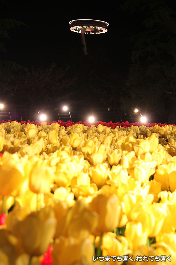 盛大に咲き誇るチューリップを見たくて、「なばなの里」に奥さんと長女と3人で行ってきました。「チューリップまつり」の会場のチューリップは、昨日の「奥殿陣屋」のチューリップとは桁違いで、圧倒されるほどの広さと数と種類です。案内によると、190品種、180万球のチューリップが植えられているとのことです。桜がまだ残っていましたので、桜とチューリップの競演ということで一緒に写真を何枚か撮ったのですが、主役である桜とチューリップを対等の配置で撮った写真は、どちらつかず中途半端な写真になってしまいました。主役級を一緒に写真に撮る場合には、どちらを主役で脇役かを決めた構図でないとダメだなぁということを勉強しました。また、これだけチューリップの数が多いと、どう何を撮れば面白い写真になるのか全然わからずじまいで、なんともセンスのない私です。どちらかというと、長女の写真のほうが構図的には面白いものが多かったりするのです。ちょっと悔しい気もしますが、ちょっと長女を見直したりもしています。掲載写真は、昼間とライトアップされた夜の写真があります。また、Page2の最後の10枚は「チューリップまつり」会場外の園内のチューリップの写真です。