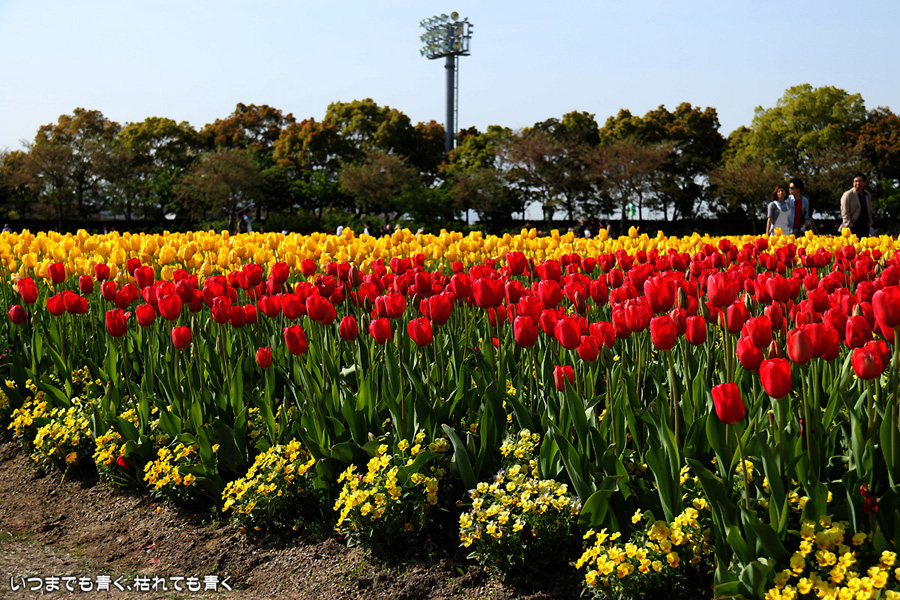 今年は土日の天候があまり良くなかったので、なばなの里のチューリップまつりに行くのはあきらめていたのですが、昨夜の地元ニュースで今が見ごろだと言っていたので、穏やかな日和にも誘われて行ってきました。確かに見ごろのチューリップも多かったですが、すでに花を落としているものや花びらが弱っているものも多くて、実際は見頃の時期はもう過ぎているなぁという感じでした。夜にはライトアップもされるのですが、花がそんな状態だったのと、ウインターイルミネーションが延長開催されているために夜になると人が多くなってきたので、日が落ちる前に早々に引き揚げてきました。