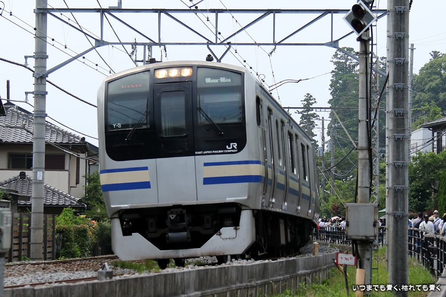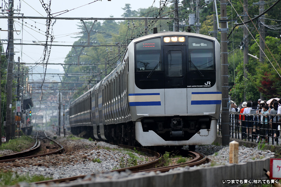 珍しい115系スカ色(この日限りの「よこすかYYのりものフェスタ号」)に運よく巡り逢えました。