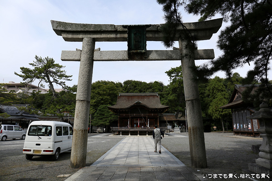 長浜城主だった秀吉の保護を受けて長い歴史を誇る長濱八幡宮です。日本三大山車祭の「長浜曳山まつり」が有名です。車で駐車場にはいったので、参道の東側の鳥居の写真を撮るのを忘れてしまいました。