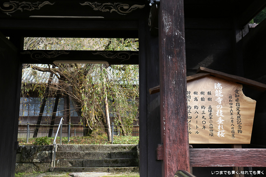 瑞龍寺は小さなお寺ですが、樹齢300年と言われるしだれ桜で有名なお寺です。このしだれ桜は一時は枯死が危惧されたようですが、平成3年に樹木医による治療が行われ、現在は春には見事な花を咲かせているともことです。次はその桜を見に来てみたいものです。