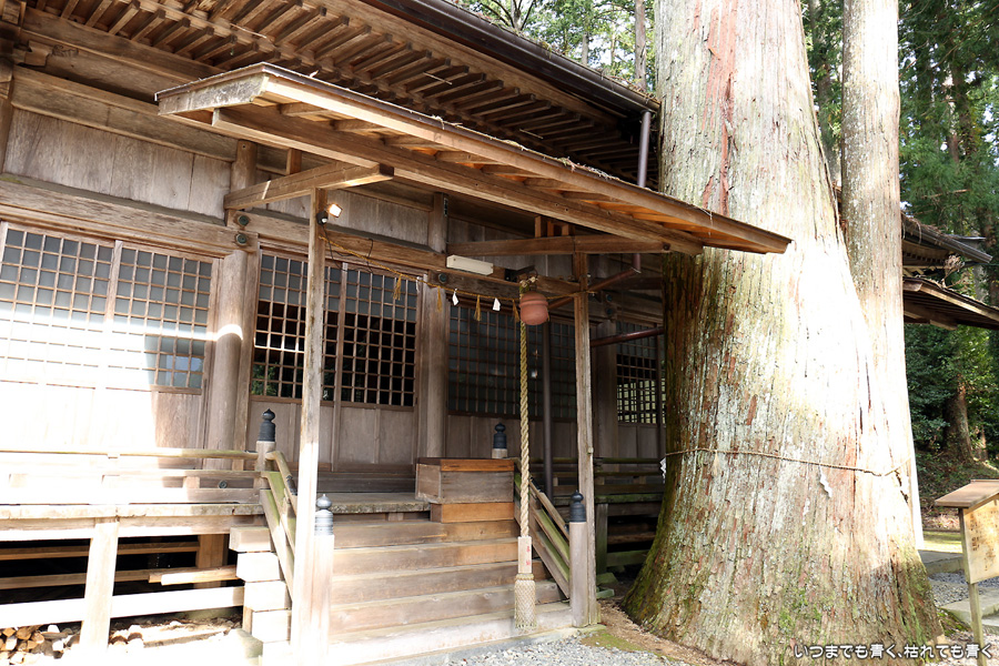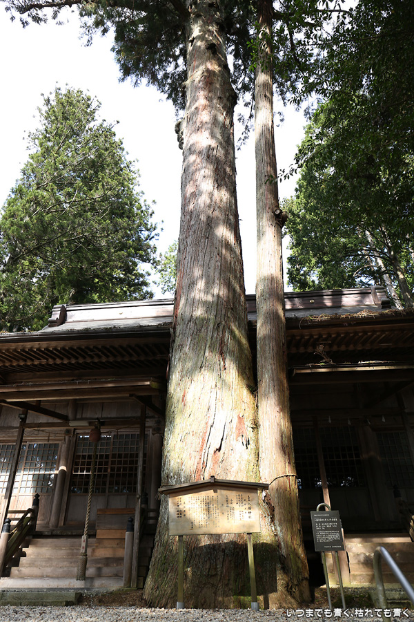 稲橋八幡神社は、広い神社ではありますが、誰もいなくてひっそりとしていました。本殿の前にあるご神木は、スギとヒノキの合体木です。右のヒノキを左のスギが抱きかかえています。スギの樹齢は700年とのこと。合体木は、夫婦和睦、家庭繁栄を表すとのことです。