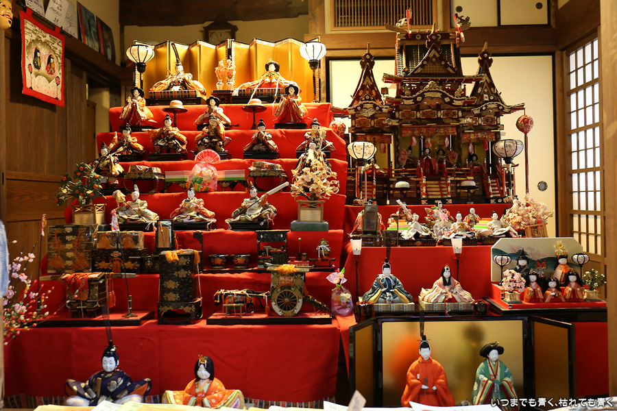 2013年から2016年まで毎年訪れていて、それ以来の久しぶりの訪問でしたが、展示するお宅が少なくなって賑やかさがなくなっていてちょっと寂しい感じでした。会えるのを楽しみにしていた松美屋さんのおばあさんとおひなさんは、体調を崩されているとのことで会えることができませんでした。いつも車を止めさせていただく駐車場の奥さんからいろいろと話を伺いましたが、高齢化が進んでいることや、おひなさんを公開しているお宅には何の手当もないということで、このままだとだんだんとすたれていくと心配されていました。