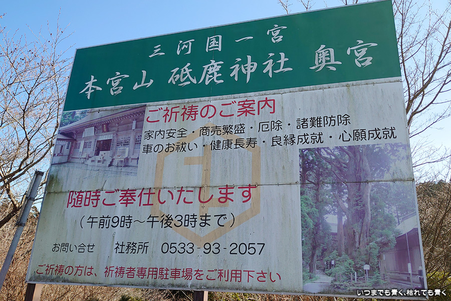 2022年1月16日(日)に訪れた、愛知県豊川市・砥鹿神社奥宮の写真です。