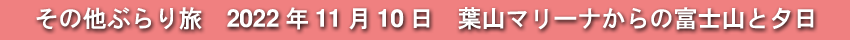 2022年11月10日(木)に訪れた、神奈川県葉山町・葉山マリーナから見た富士山と夕日の写真です。