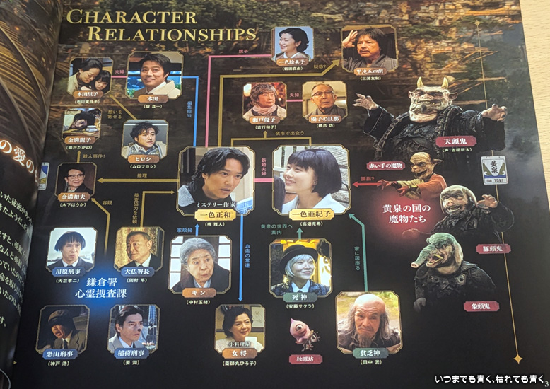 幽霊や魔物、妖怪といった「人ならざるもの」が日常的に姿を現す古都・鎌倉。この地に居を構えるミステリー作家・一色正和(堺雅人)のもとに嫁いできた亜紀子(高畑充希)は、妖怪や幽霊が人と仲良く暮らす鎌倉の街に最初は驚くが、次第に溶け込んでいく。正和は本業の執筆に加え、魔物や幽霊が関わる難事件の捜査で警察に協力することもあり、日々はにぎやかに過ぎていった。しかし、そんなある日、亜紀子が不測の事態に巻き込まれ、黄泉の国へと旅立ってしまう。正和は亜紀子を取り戻すため、黄泉の国へ行くことを決意するが・・・ |