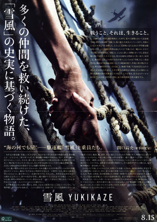 考えさせられることが多くて、予告で感じたほど泣ける映画ではありませんでしたが、それでも、早瀬が亡くなったシーンや、寺澤が早瀬の家族にあてた手紙のシーンは悲しく切なく、涙が出てしまいました。ラストのいろんなシーンが回想される時に流れる「手紙」という歌は心に響きましたし、クレジット表示の時の静かな波の音は、戦いの中で家族を懐かしみ国を思う乗組員の気持を想像して切なさを感じてしまいました。制作者の思いみたいなものが終わり方で伝わってきたようでした。