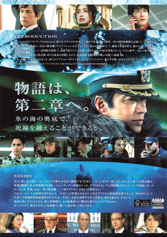 日本政府が極秘に建造した高性能原子力潜水艦を奪い、独立国「やまと」建国を世界に宣言した海江田四郎(大沢たかお)は、その卓越した操舵で数々の海戦を潜り抜け、東京湾での大海戦で米第7艦隊を圧倒した後、国連総会へ出席するためニューヨークへ針路をとった。そんな中、アメリカとロシアの国境線であるベーリング海峡にさしかかったやまとの背後に、ベネット大統領(リック・アムスバリー)が送り込んだアメリカの最新鋭原潜が迫り、流氷が浮かぶ極寒の海で潜水艦同士の激しいバトルが幕を開ける。一方、日本ではやまと支持を表明する竹上首相(笹野高史)を中心に、衆議院解散総選挙が実施される・・・ |