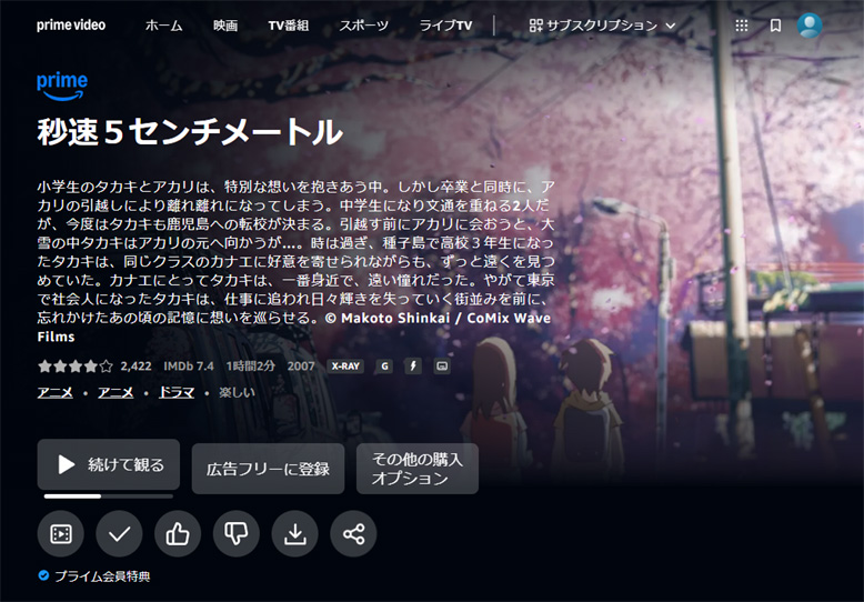 10月10日に実写版の「秒速5センチメートル」が公開されますので、その前に18年前に公開された新海誠のアニメ版を観ておきたいと思って観ることにしました。