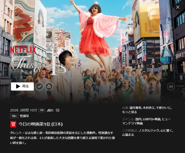 話題になっているNetflix映画ということと、個人的にも興味あるテーマの映画でしたので観てみました。まず、主人公の望月春希がとても良かったというのが印象的な映画でした。容姿も踊りも複雑な心理状態の表現、すべてに素晴らしかったです。望月春希がいてこそ、この映画の本質がしっかりと表現されたと思います。この映画のテーマは人によって感じ方が異なるデリケートな問題なので、そこに違和感があると物語にしっかりと入り込めなくてうまく本質が伝わらないと思います。