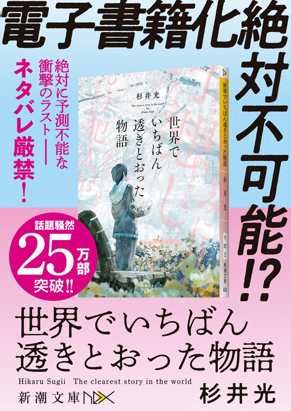 「電子書籍化絶対不可能」、「ネタバレ厳禁」という帯の記述に興味を持った作品です。タイトルからは、透明感があって心があらわれるような感動的な物語だと思いましたが、予想していた内容とは全く異なる凄い作品でした。