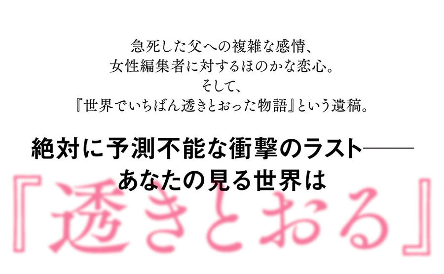 そして、最後にその小説は誰のためだったのかがわかり、透き通っているという意味も明らかになります。それはまったくの予想外の展開で、たぶん読者は一人として予想できなかったのではないかと思うくらい意外性のある結末でした。この小説自体が、宮内彰吾のアイデアで書かれた「世界でいちばん透きとおった物語」であったわけです。