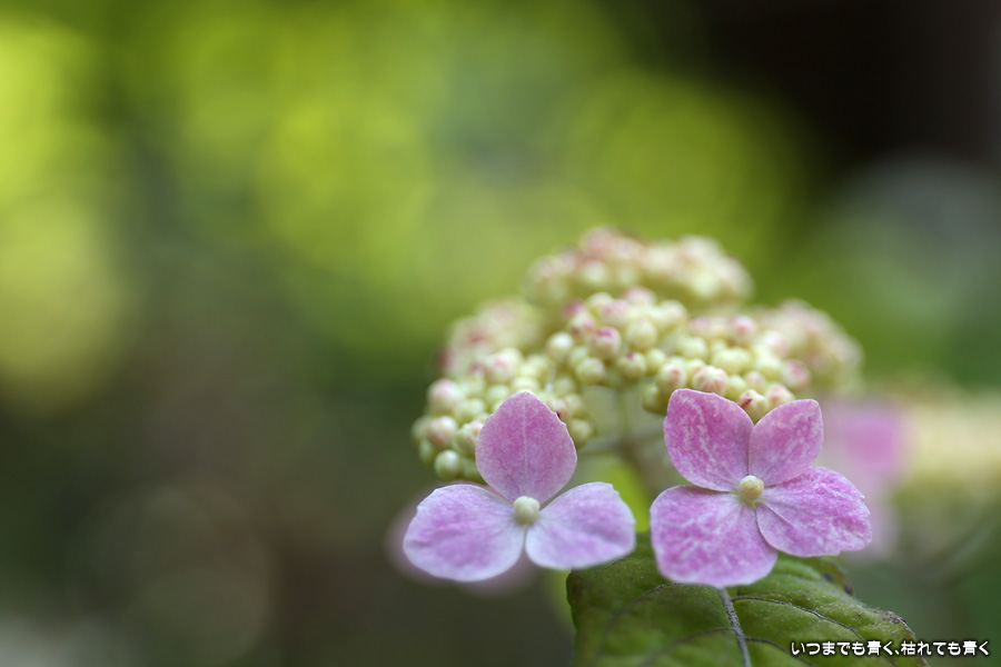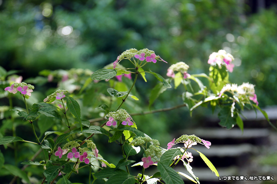 三光寺は「あじさいの山寺」と呼ばれています。紫陽花はよくあるホンアジサイではなくガク咲きのヤマアジサイと呼ばれる控えめな種類が多く、派手なあじさい寺という趣ではありません。ただ、訪れる時期によっては華やかな情景を見ることができるのかもしれません。ヤマアジサイはひとつひとつを丁寧に撮影した方がいいかなと思い、そのような写真が多くなってしまいました。