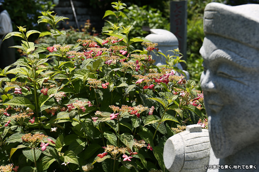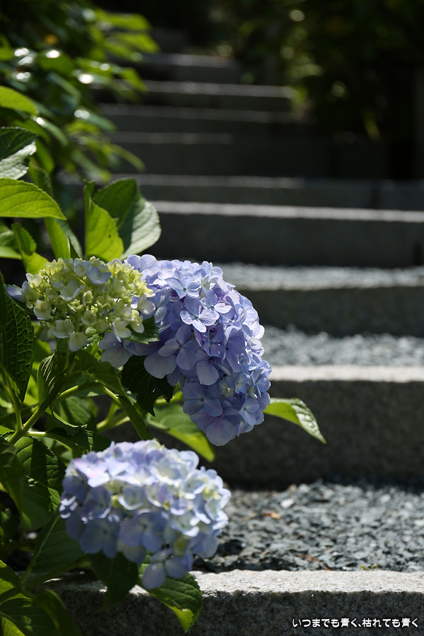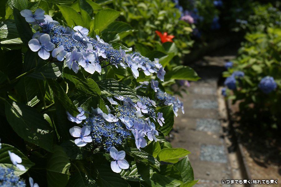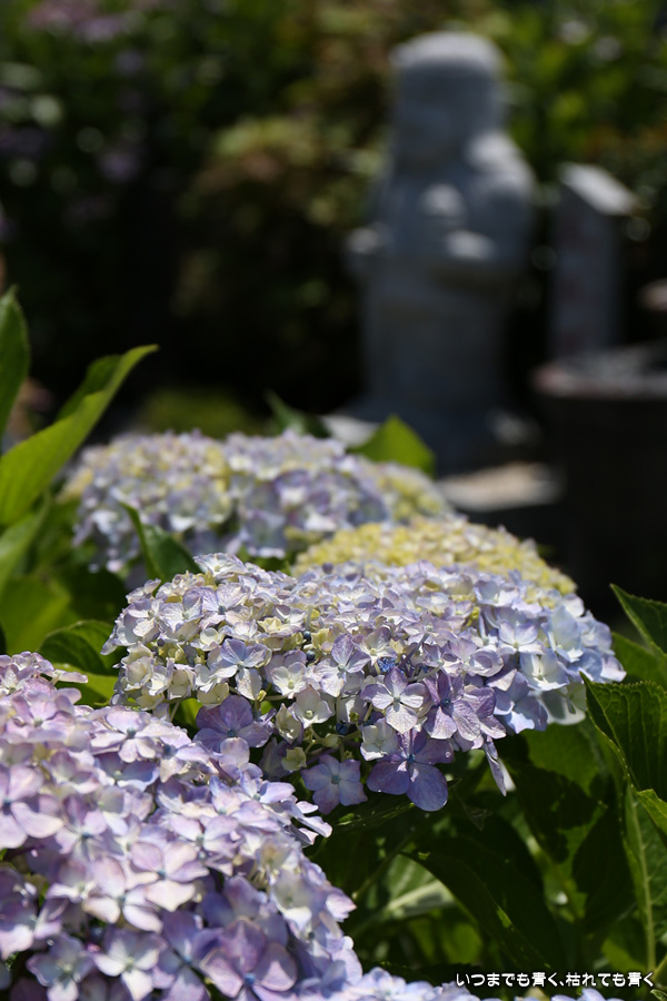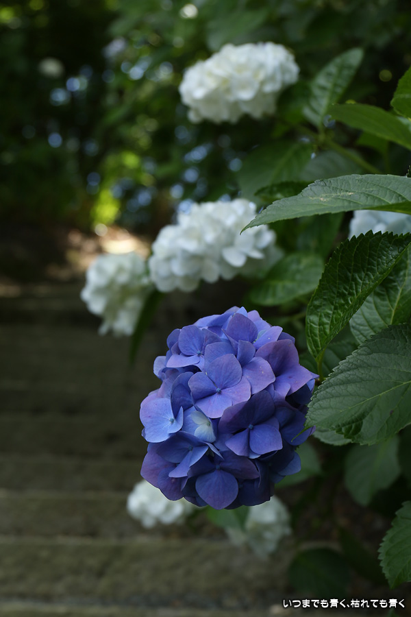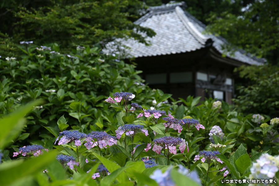 本勝寺は昨年に訪れて気に入ったあじさい寺です。昨年は閉門ギリギリでご住職のご厚意で時間が過ぎても拝観させていただいたのですが、やはり落ち着かなくてじっくりと写真を撮ることができなかったので、今年リベンジでやってきました。今年は昨年の花の状態よりも良くて美しい紫陽花を撮影することができました。最初は日差しがきつい天候でしたが、途中でひと雨降って濡れた紫陽花を撮影することもできました。