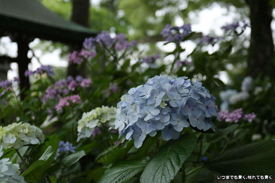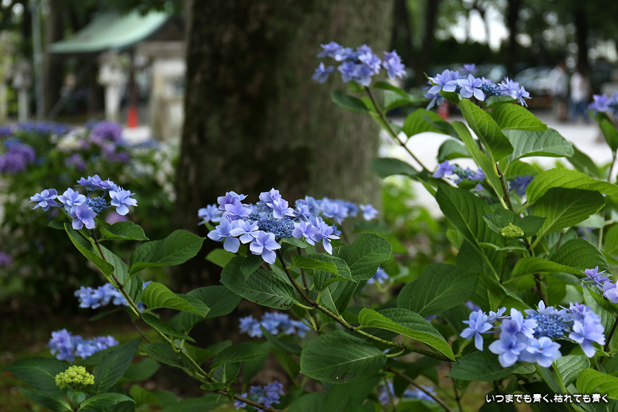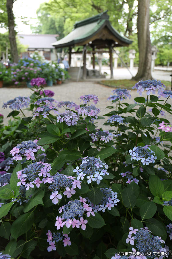 テレビのニュースで紫陽花がたくさん咲いていることを知り、初めて訪れました。期待以上の素晴らしい紫陽花でした。広い境内にはたくさんの種類の紫陽花が植えられていて、本殿の裏は紫陽花園になっています。訪れた時期も良かったのかどの花も傷みの無い美しい花ばかりでしたし、境内の風景に紫陽花が良く似合っていて写真も絵になりました。ただ、暑さと湿気で撮影は吹き出す汗との戦いでもありました。