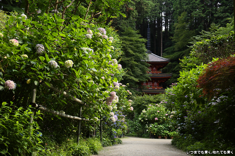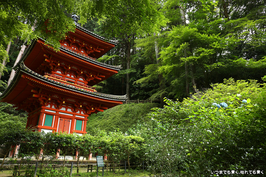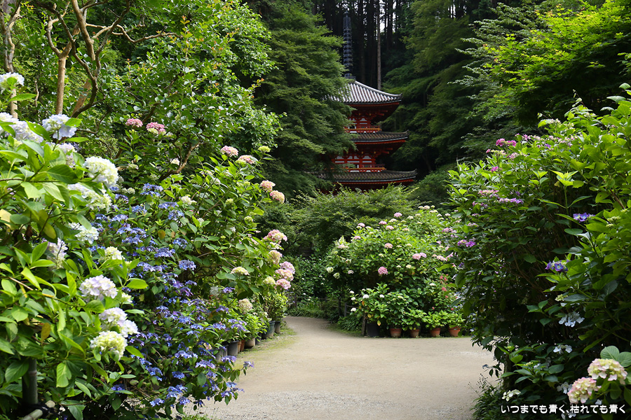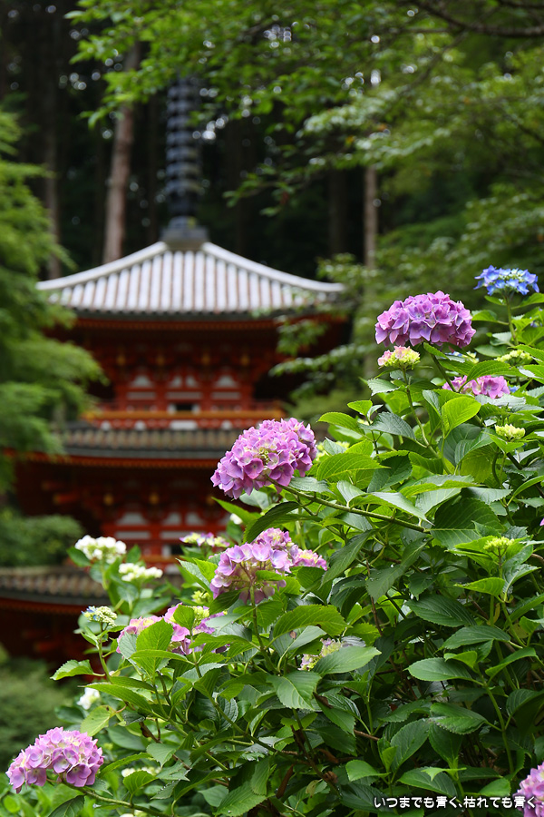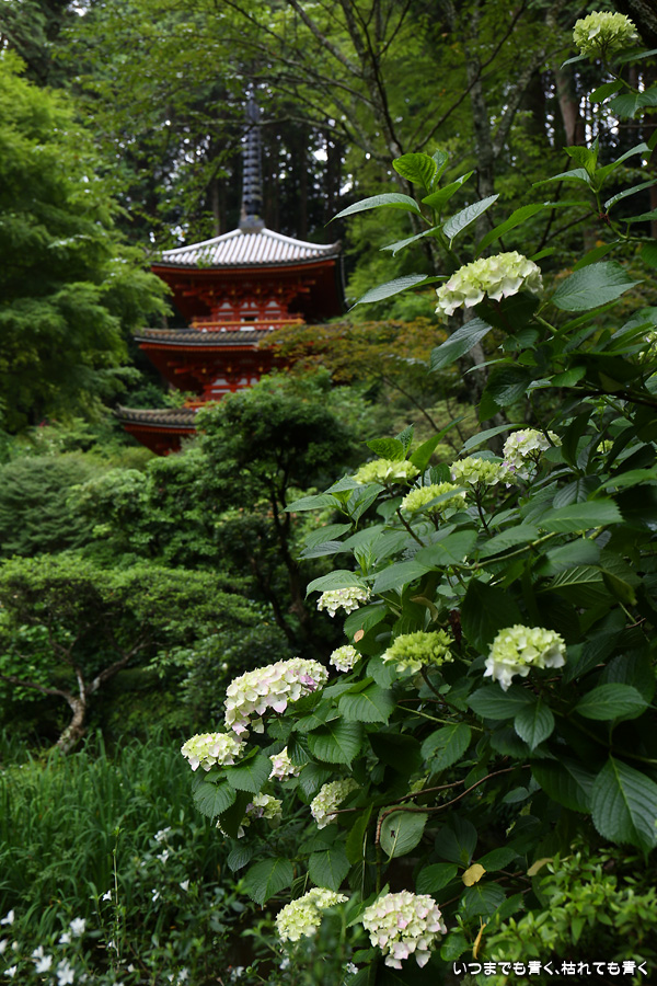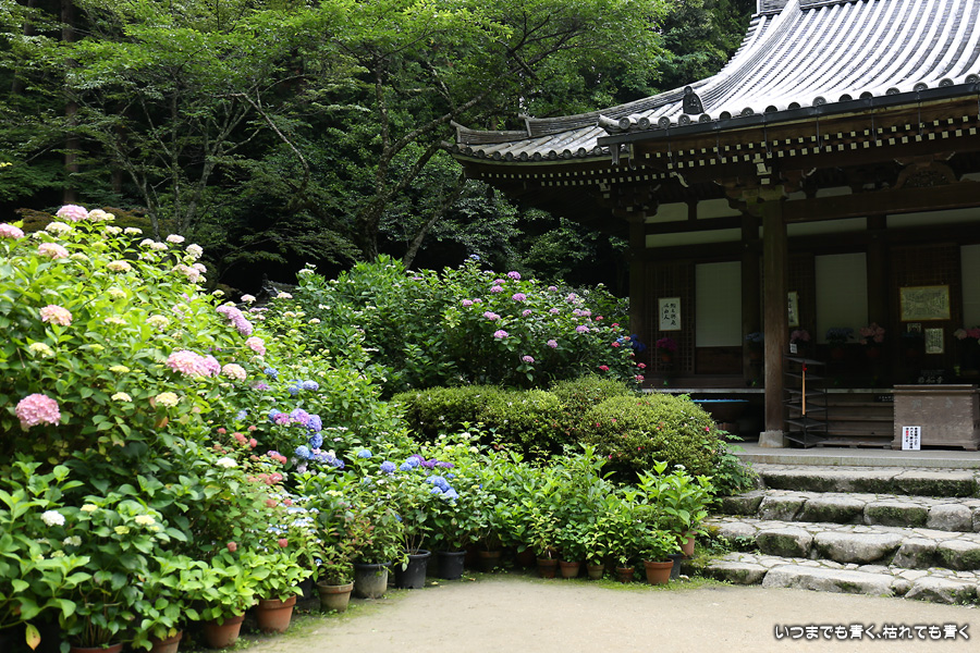岩船寺は5年ぶりになります。毎年訪れたいとは思っているのですが、場所がちょっと中途半端なところ(奈良市には近いのですが)なので行くにはちょっと構えてしまいます。岩船寺の境内は広くはないのですが、三重塔と紫陽花のコラボ写真が撮れることで有名です。今回は時間が押してしまっていて40分くらいの滞在時間しか取れず、ゆっくりと写真を撮っている時間がなかったのが残念でした。紫陽花はまだ色がついていないものや小さいものも目立ち、時期的にはもう少しあとの方が良かったのかも知れません。