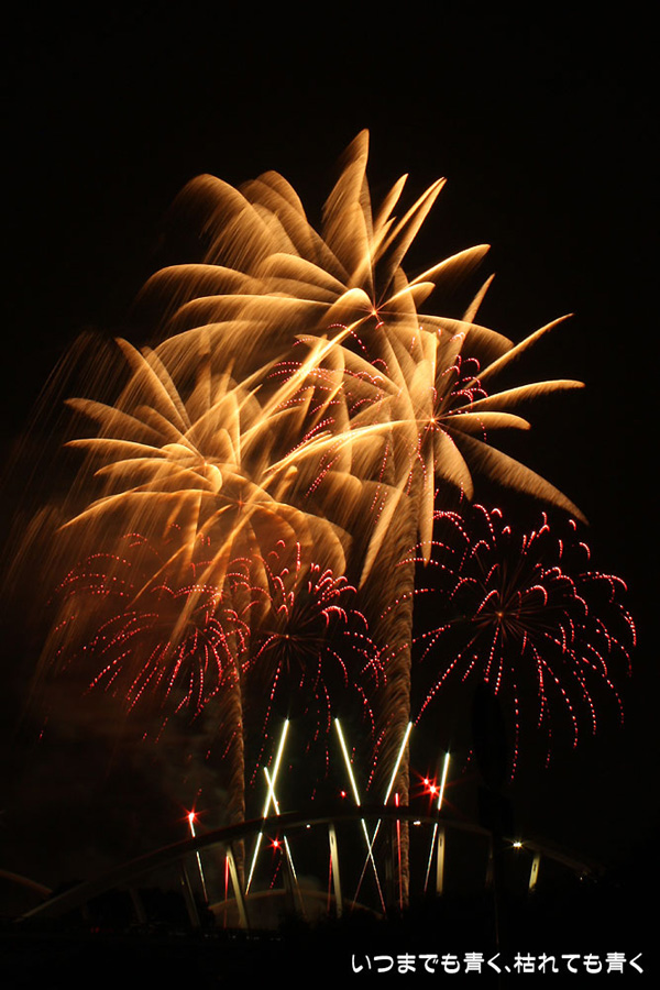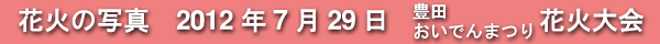 2012年7月29日に開催された、愛知・豊田の「豊田おいでんまつり花火大会」の花火の写真です。