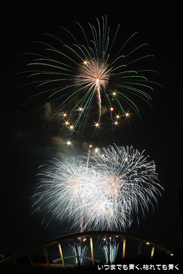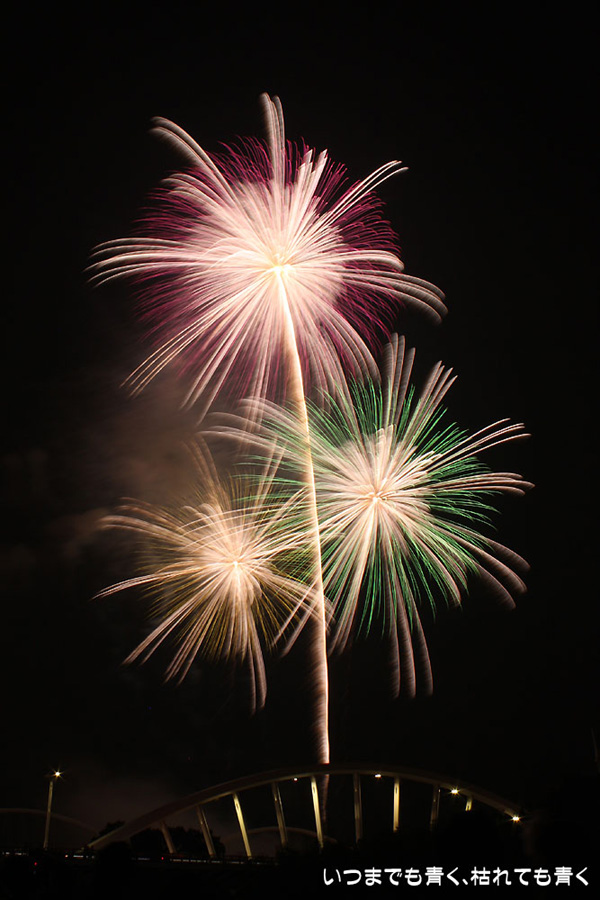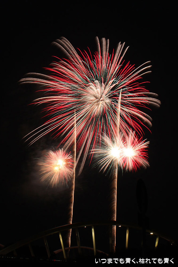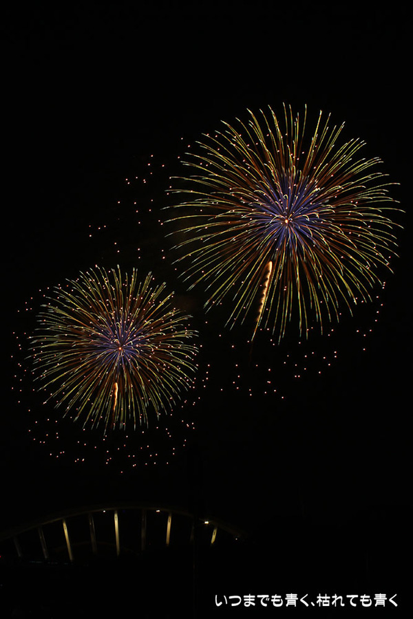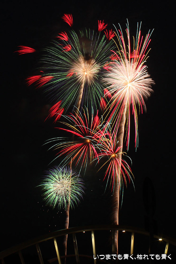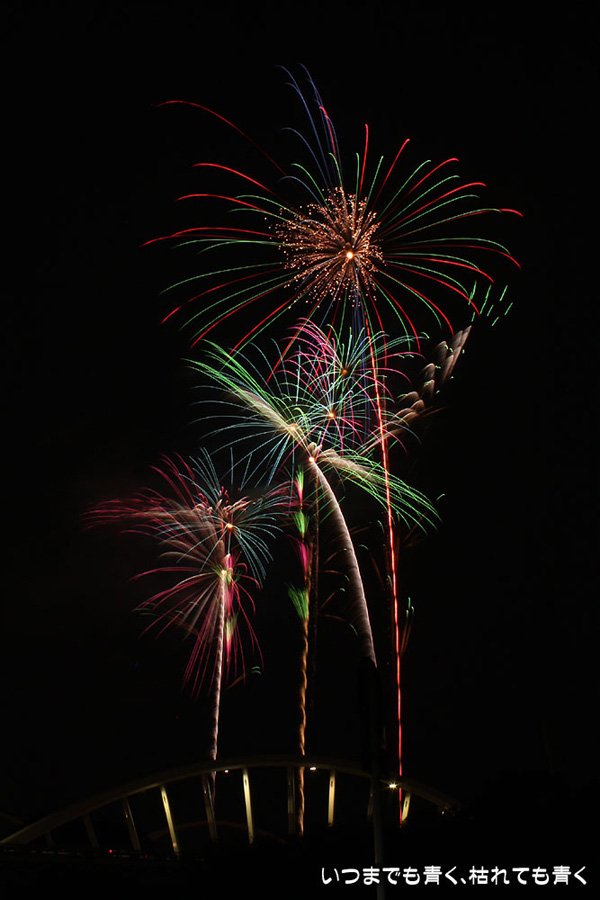 今年は奥さんと長女の都合が悪かったので、久しぶりに末娘とふたりでの見物です。私はカメラと三脚を持っていき花火見物というより花火撮影です。始まる30分くらい前に現地に行ったので、思うような場所が確保できず、レンズの先に道路交通標識がある場所となってしまいました。でも、写真撮影も気楽に楽しむのが信条なので、あまり細かくこだわらずに記念に残せればという感じで撮影しました。花火撮影にも慣れてきたのか、年々シャープな写真を撮れるようになってきたかなと思いますが、花火を見ながら写真の出来上がりを予測してシャッターを切る時間を考えるのは相変わらず難しいです。写真を撮りながら花火を楽しんでいると、2時間なんてあっという間でした。すでに相当暑い日が続いていますが、これで夏本番です。