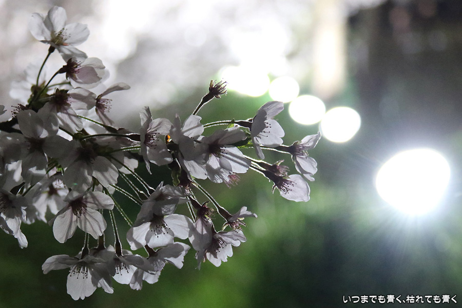 翌日から雨が続くという予報なので、この日で今年の桜は見納めかもしれないと思って、仕事が終わってから瑞穂陸上競技場の近くにある山崎川の桜のライトアップを見てきました。何度見に来ても、桜と鼎小橋(かなえこはし)は絵になりますね。露出をわざとプラス側にふって白飛び承知で白く輝くような桜に仕上げましたが、いかがでしょう。